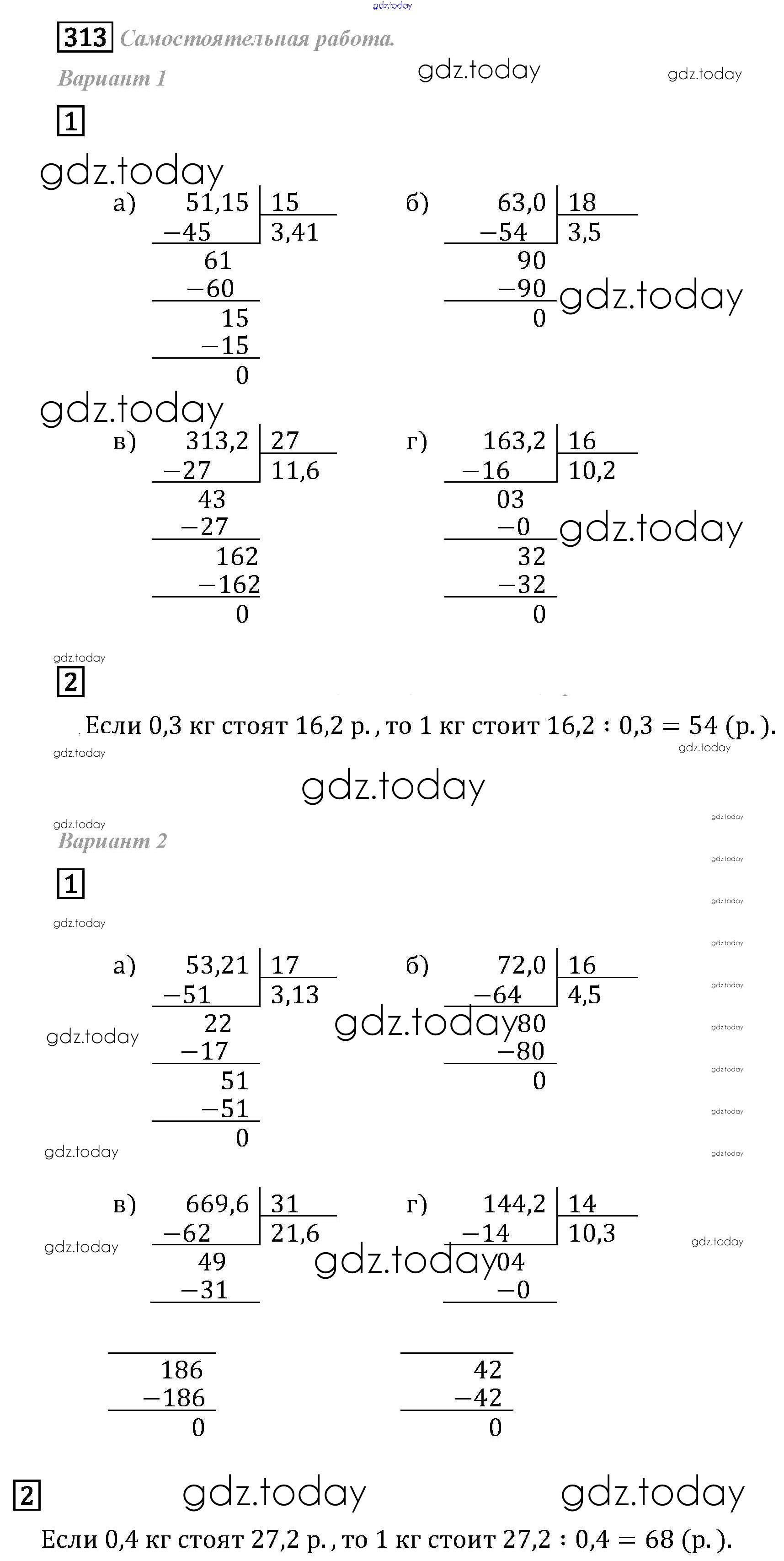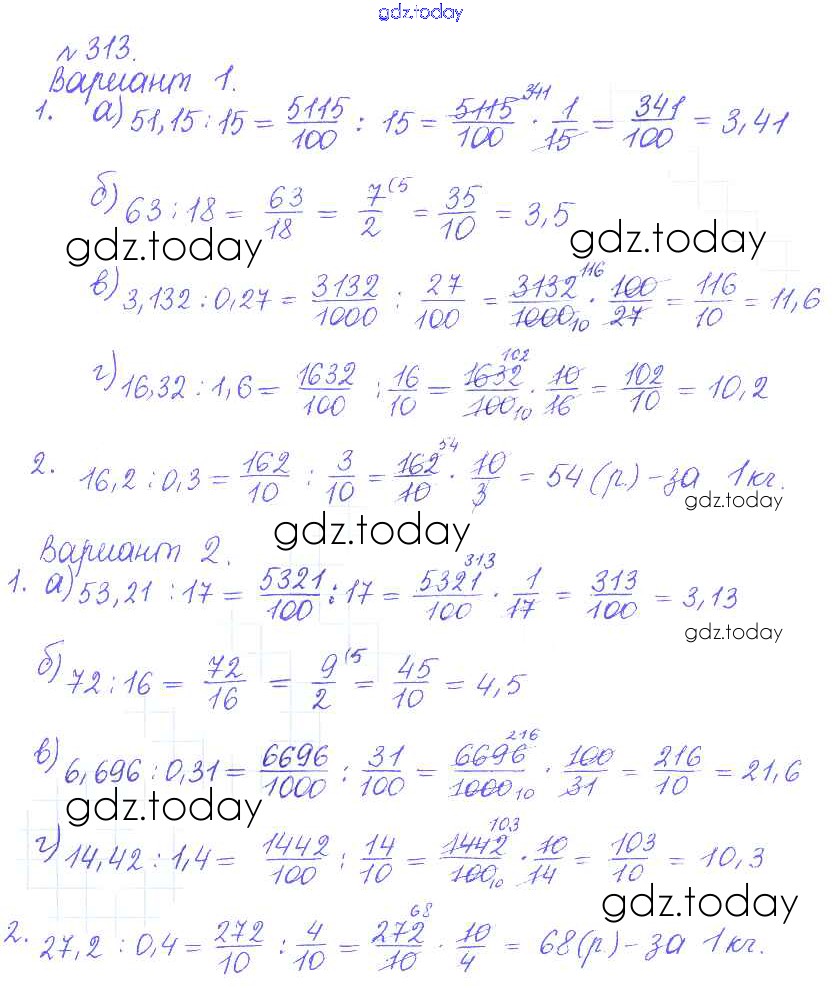 Ответы к Решение к упражнениям 313 Задачнику по Математике для 6 класса Бунимович, Кузнецова Просвещение Сферы 2014