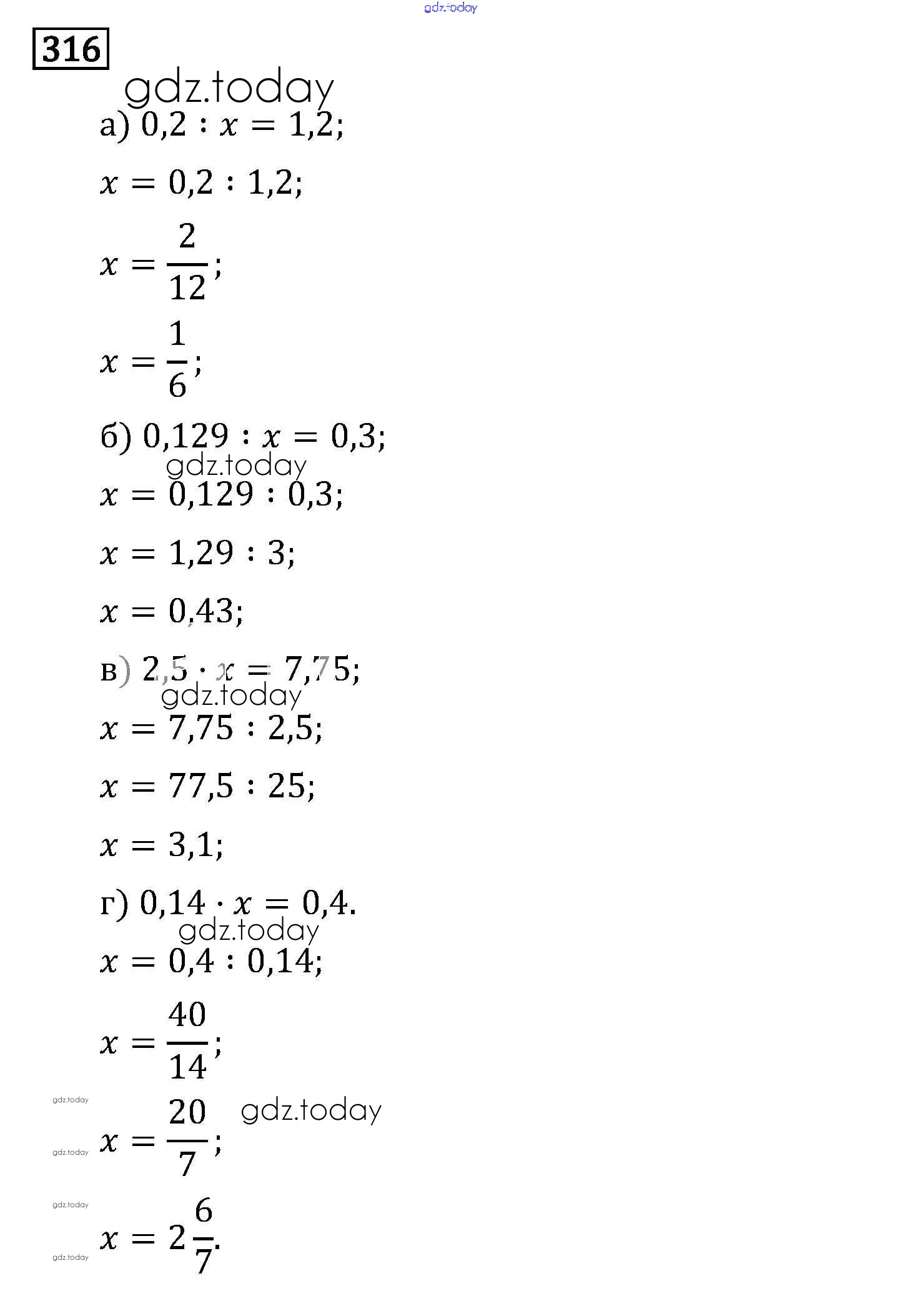 Ответы к Решение к упражнениям 316 Задачнику по Математике для 6 класса Бунимович, Кузнецова Просвещение Сферы 2014