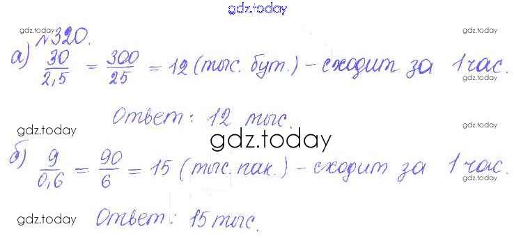 Ответы к Решение к упражнениям 320 Задачнику по Математике для 6 класса Бунимович, Кузнецова Просвещение Сферы 2014