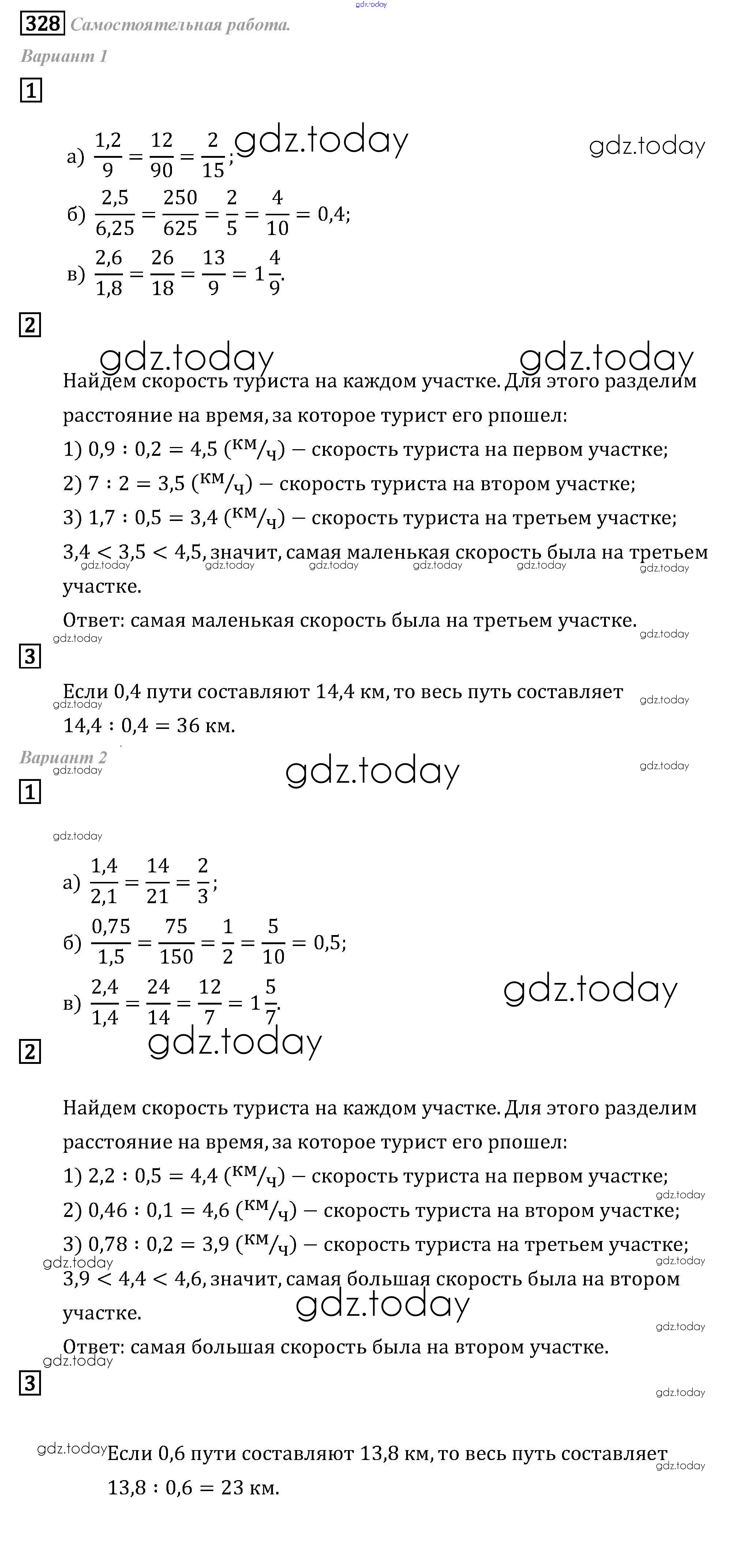 На страницах сайта gdz.today вы найдете учебный и вспомогательный материал, направленный на улучшения знаний школьной программы. ГДЗ - онлайн мир знаний Решение к упражнениям 328 Задачнику по Математике для 6 класса Бунимович, Кузнецова Просвещение Сферы 2014