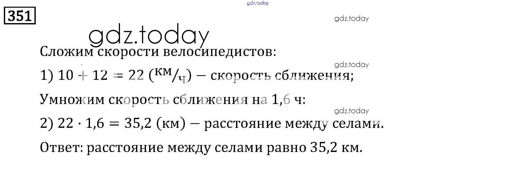 На страницах сайта gdz.today вы найдете учебный и вспомогательный материал, направленный на улучшения знаний школьной программы. ГДЗ - онлайн мир знаний Решение к упражнениям 351 Задачнику по Математике для 6 класса Бунимович, Кузнецова Просвещение Сферы 2014