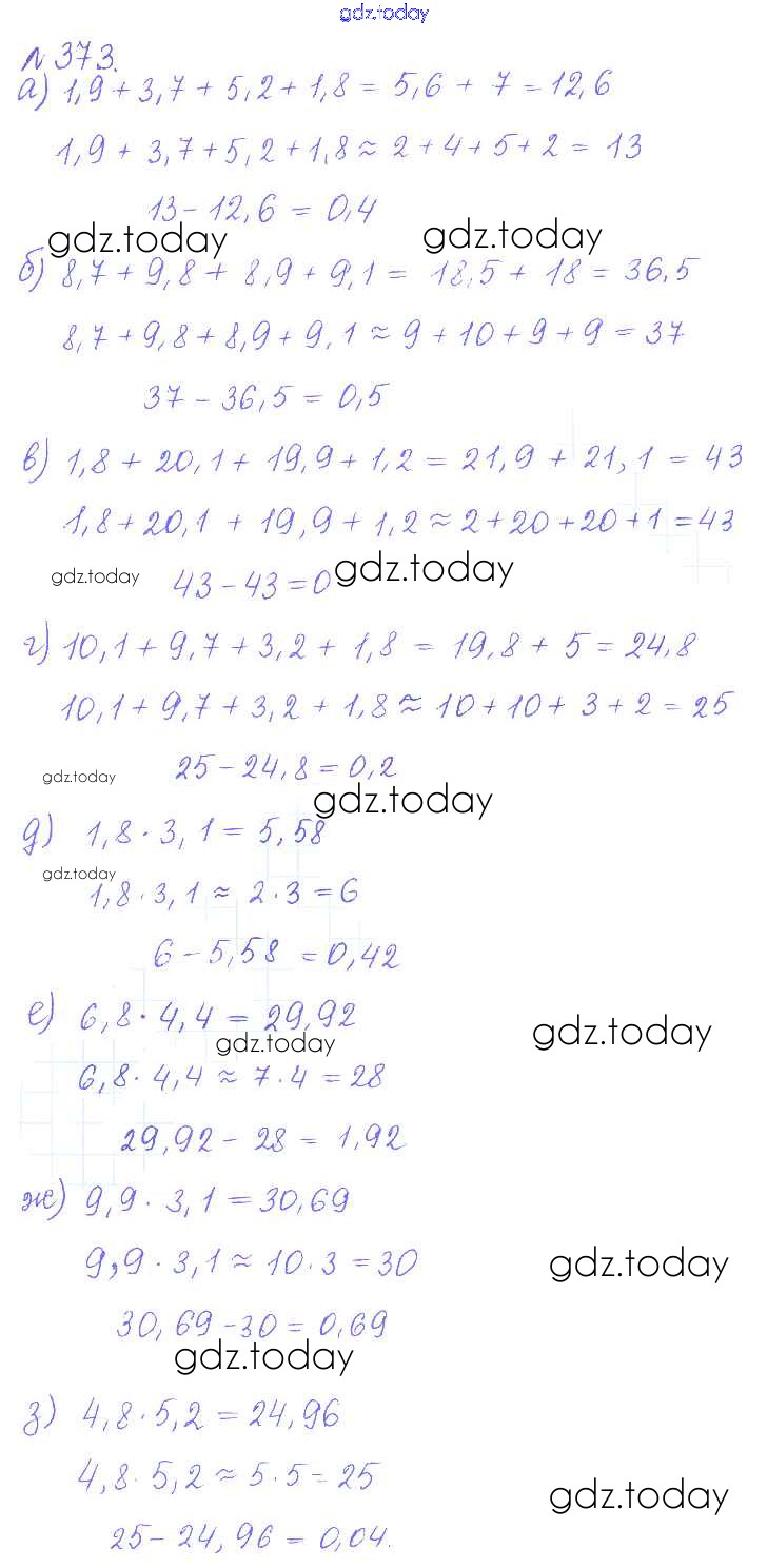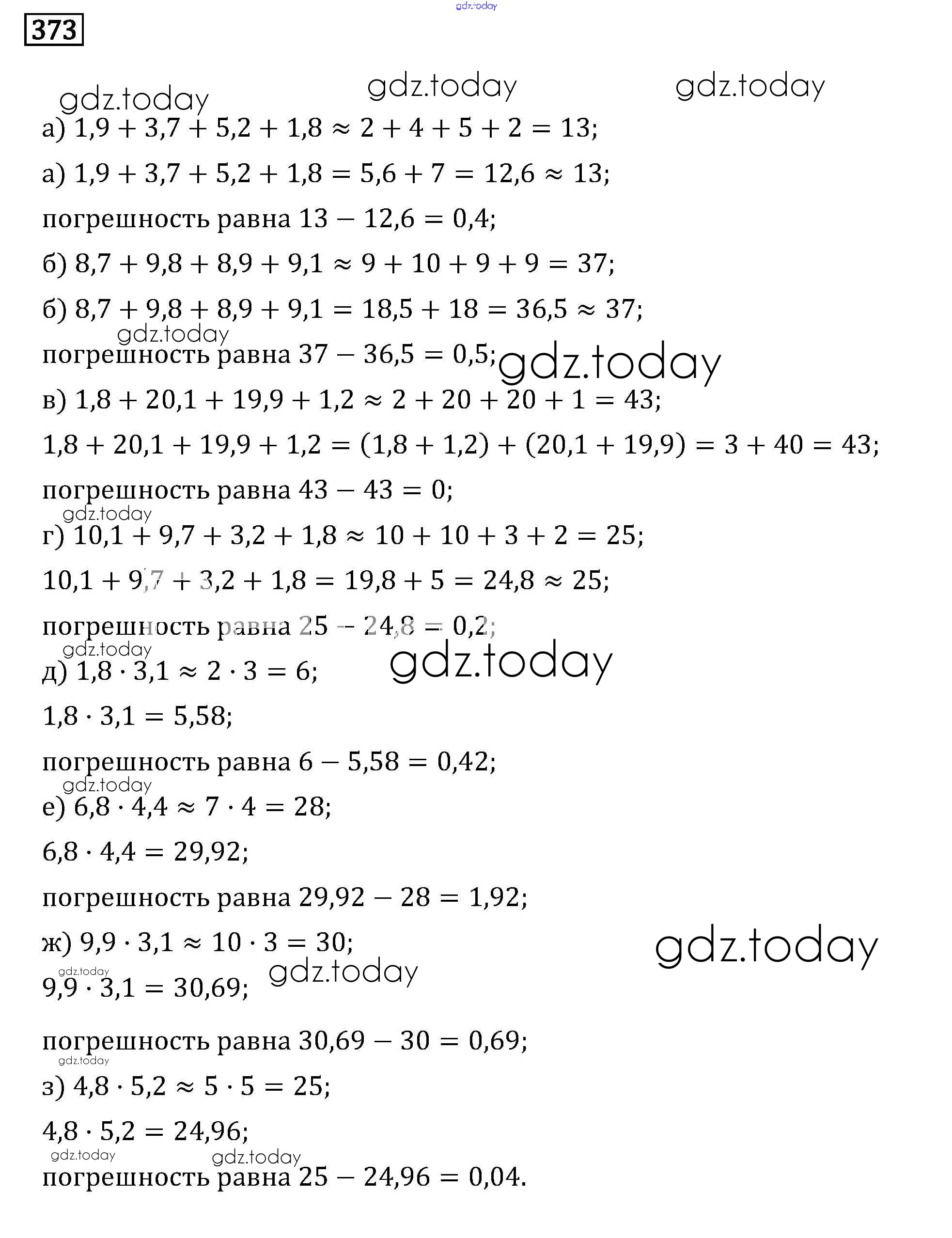 Ответы к Решение к упражнениям 373 Задачнику по Математике для 6 класса Бунимович, Кузнецова Просвещение Сферы 2014