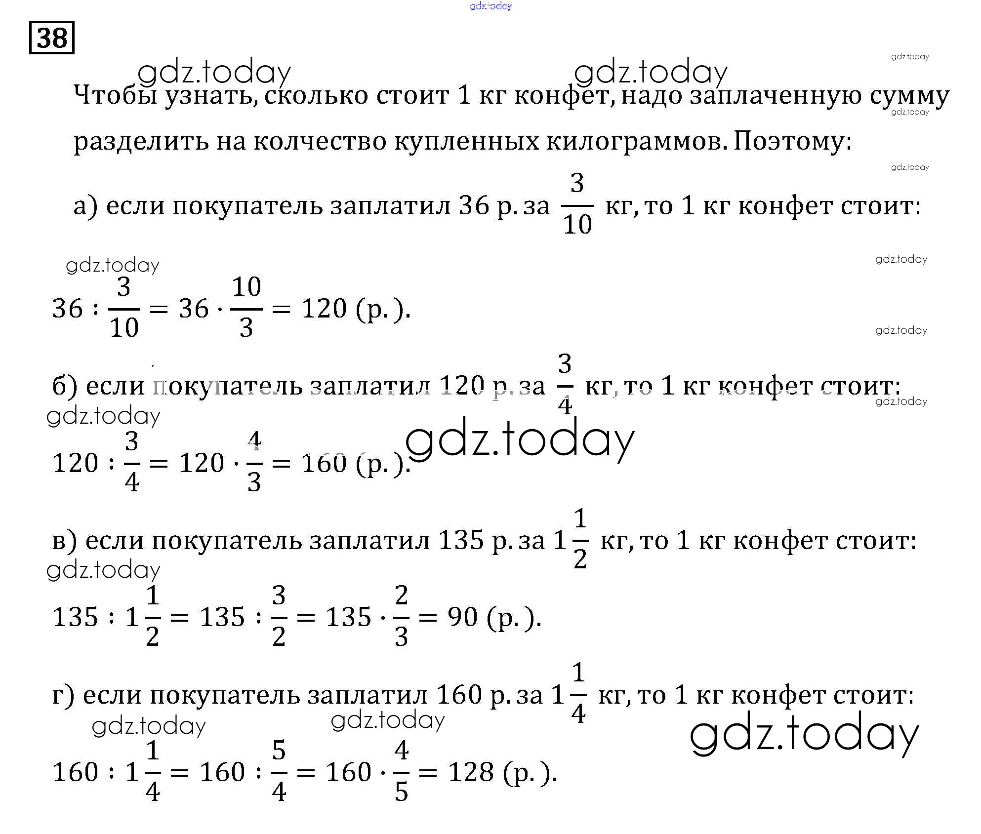 Ответы к Решение к упражнениям 38 Задачнику по Математике для 6 класса Бунимович, Кузнецова Просвещение Сферы 2014