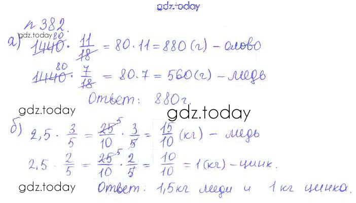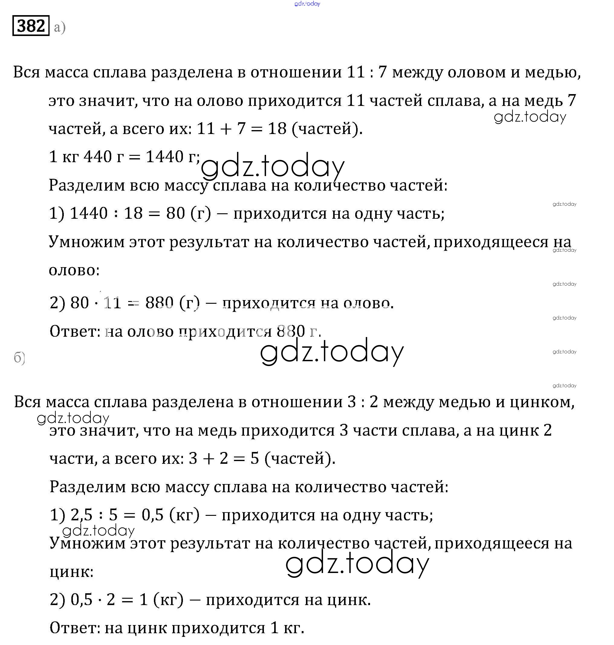 Ответы к Решение к упражнениям 382 Задачнику по Математике для 6 класса Бунимович, Кузнецова Просвещение Сферы 2014
