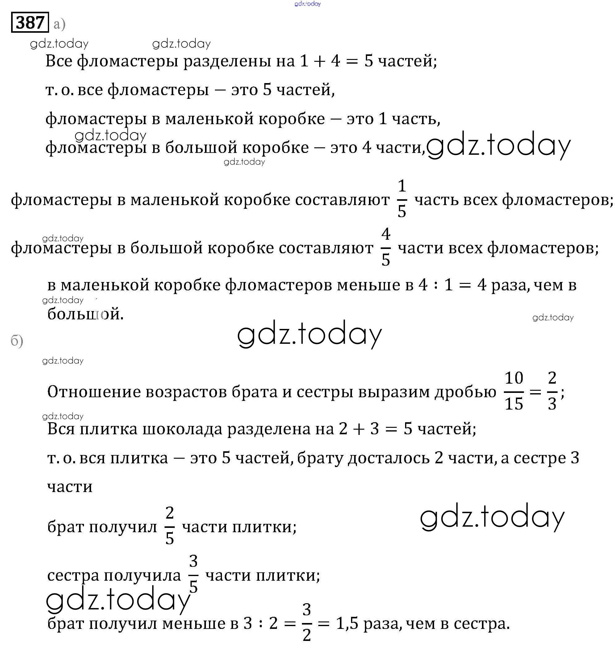 На страницах сайта gdz.today вы найдете учебный и вспомогательный материал, направленный на улучшения знаний школьной программы. ГДЗ - онлайн мир знаний Решение к упражнениям 387 Задачнику по Математике для 6 класса Бунимович, Кузнецова Просвещение Сферы 2014