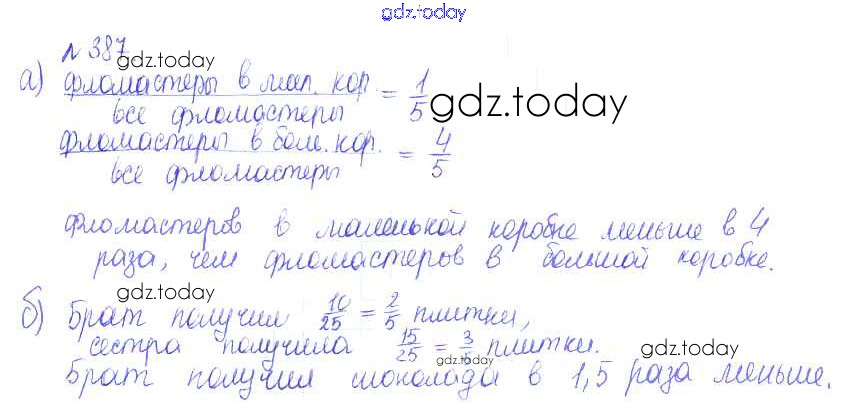 Ответы к Решение к упражнениям 387 Задачнику по Математике для 6 класса Бунимович, Кузнецова Просвещение Сферы 2014