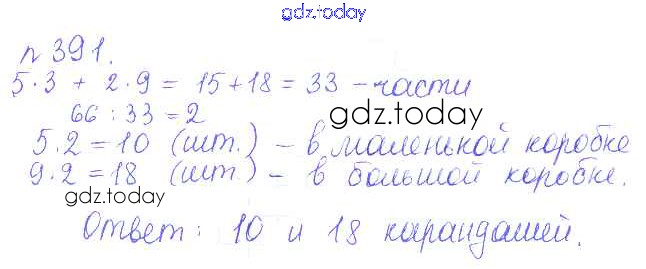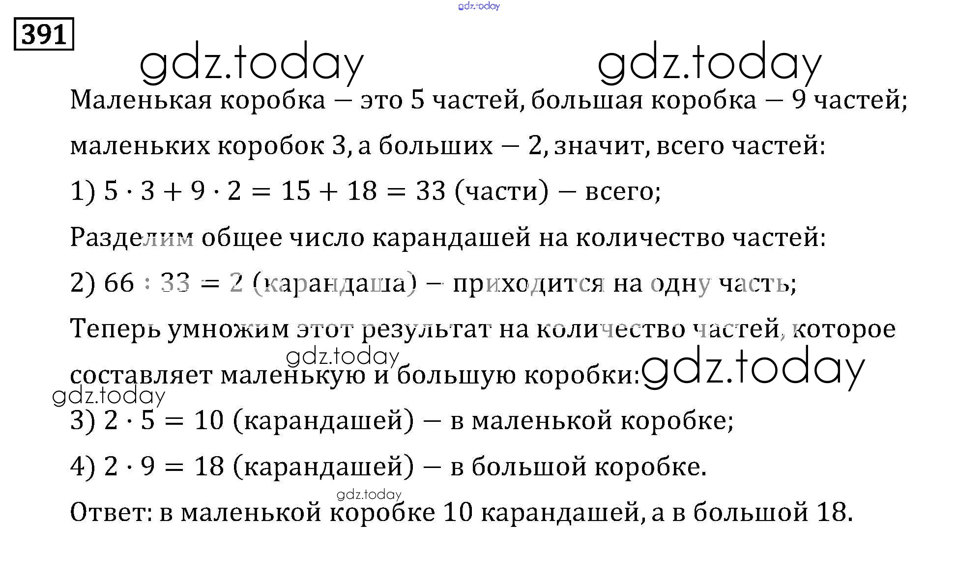 Ответы к Решение к упражнениям 391 Задачнику по Математике для 6 класса Бунимович, Кузнецова Просвещение Сферы 2014
