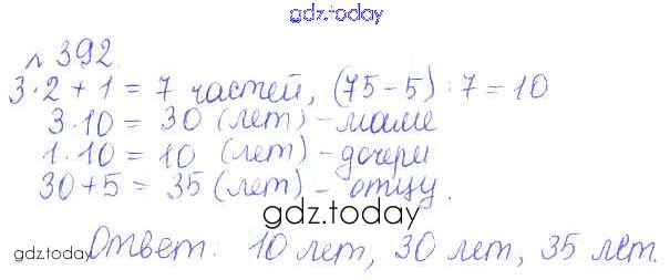 Ответы к Решение к упражнениям 392 Задачнику по Математике для 6 класса Бунимович, Кузнецова Просвещение Сферы 2014