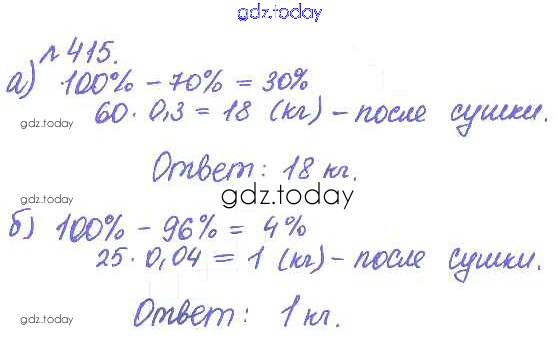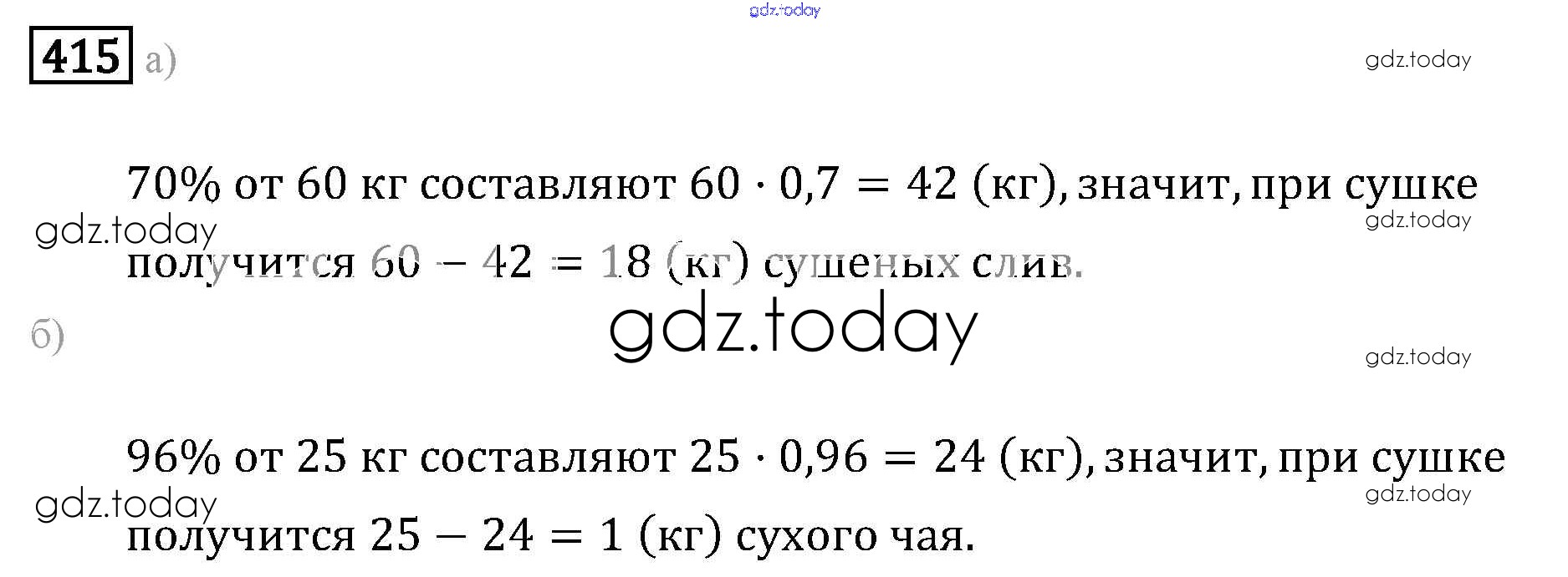 Ответы к Решение к упражнениям 415 Задачнику по Математике для 6 класса Бунимович, Кузнецова Просвещение Сферы 2014