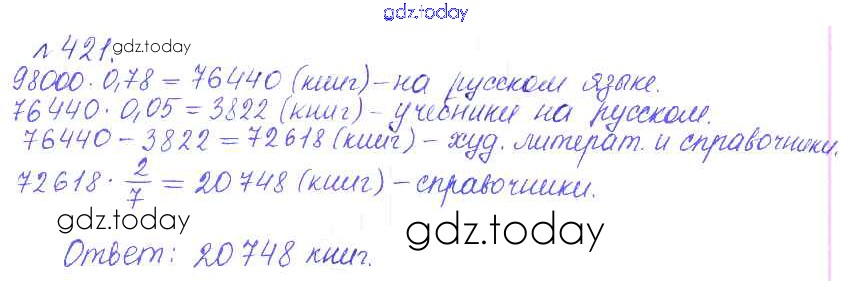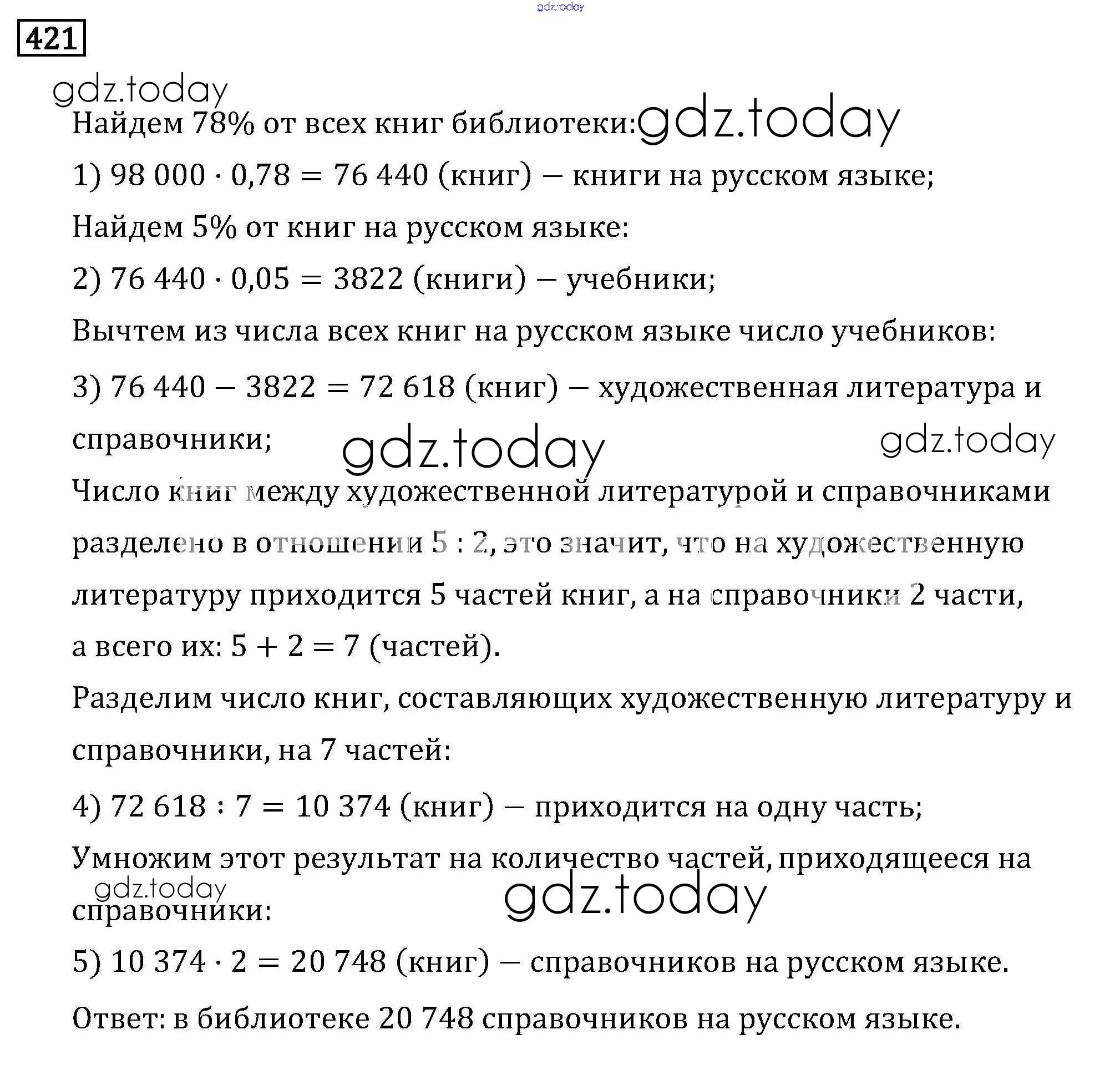 Ответы к Решение к упражнениям 421 Задачнику по Математике для 6 класса Бунимович, Кузнецова Просвещение Сферы 2014