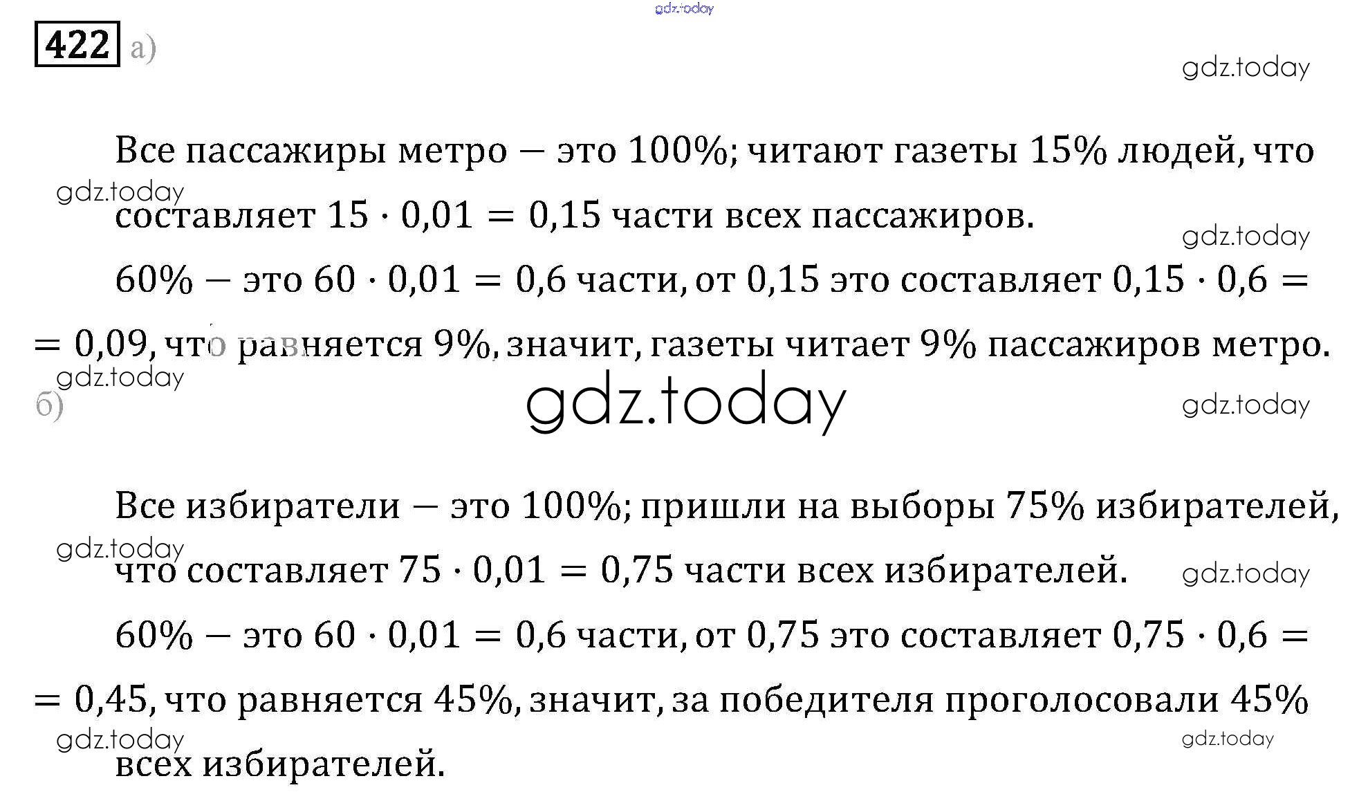 На страницах сайта gdz.today вы найдете учебный и вспомогательный материал, направленный на улучшения знаний школьной программы. ГДЗ - онлайн мир знаний Решение к упражнениям 422 Задачнику по Математике для 6 класса Бунимович, Кузнецова Просвещение Сферы 2014