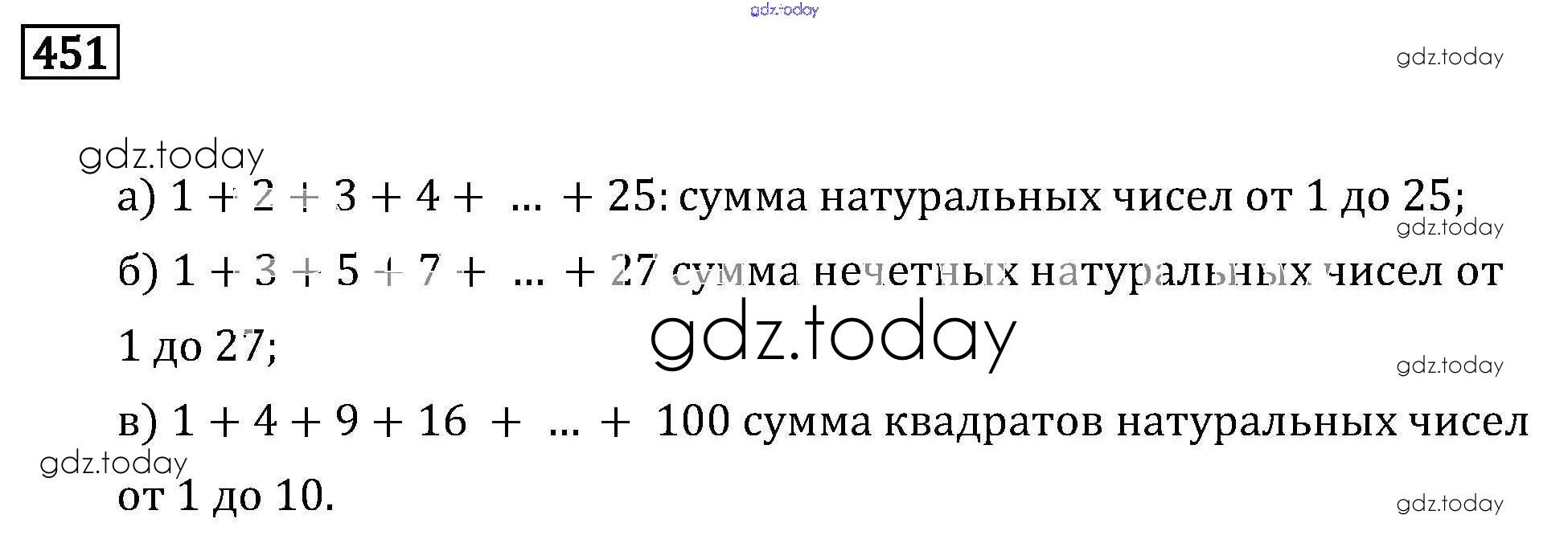 На страницах сайта gdz.today вы найдете учебный и вспомогательный материал, направленный на улучшения знаний школьной программы. ГДЗ - онлайн мир знаний Решение к упражнениям 451 Задачнику по Математике для 6 класса Бунимович, Кузнецова Просвещение Сферы 2014