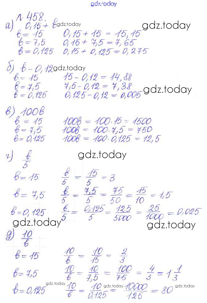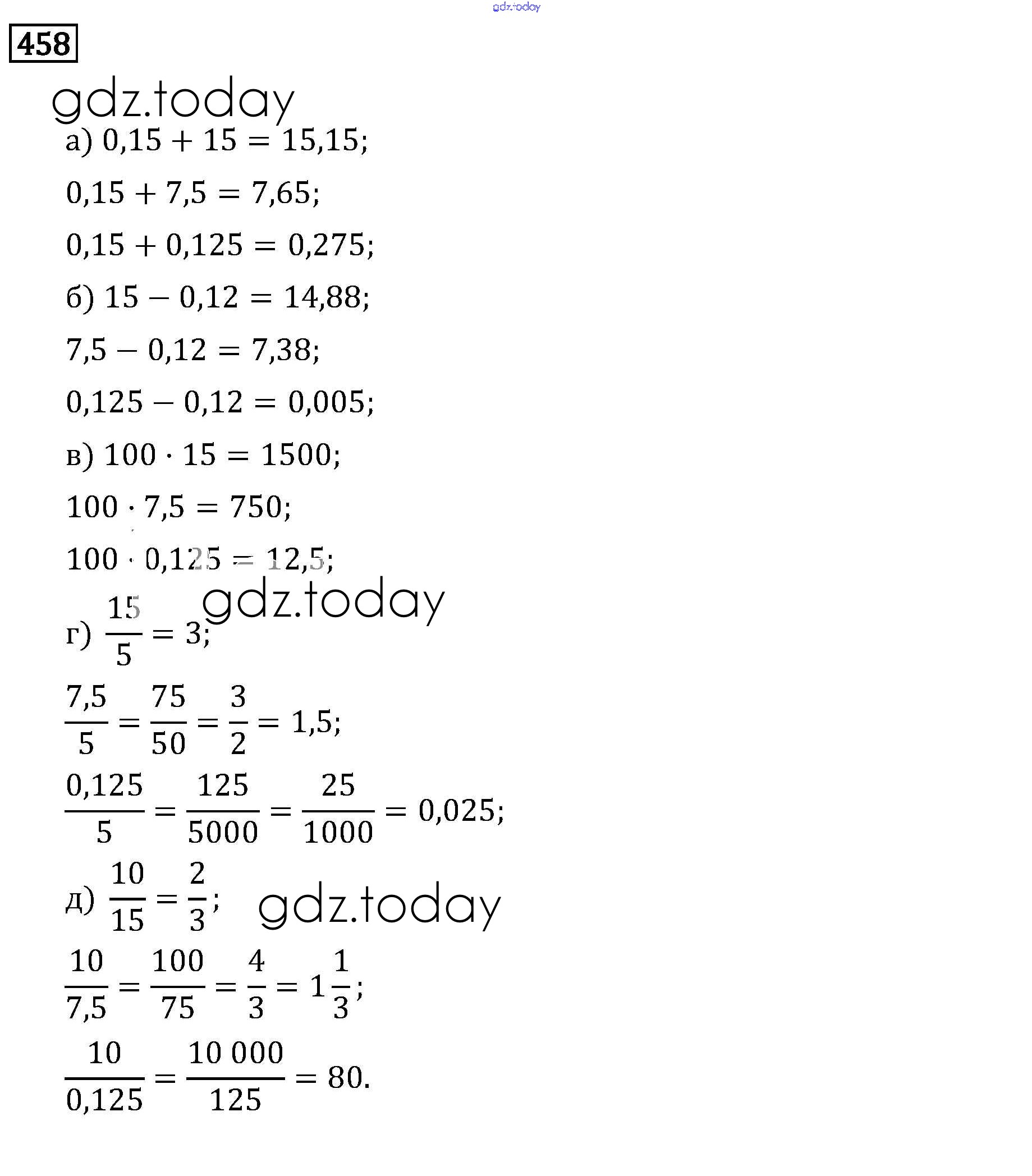 На страницах сайта gdz.today вы найдете учебный и вспомогательный материал, направленный на улучшения знаний школьной программы. ГДЗ - онлайн мир знаний Решение к упражнениям 458 Задачнику по Математике для 6 класса Бунимович, Кузнецова Просвещение Сферы 2014