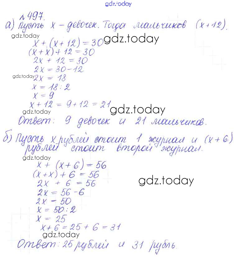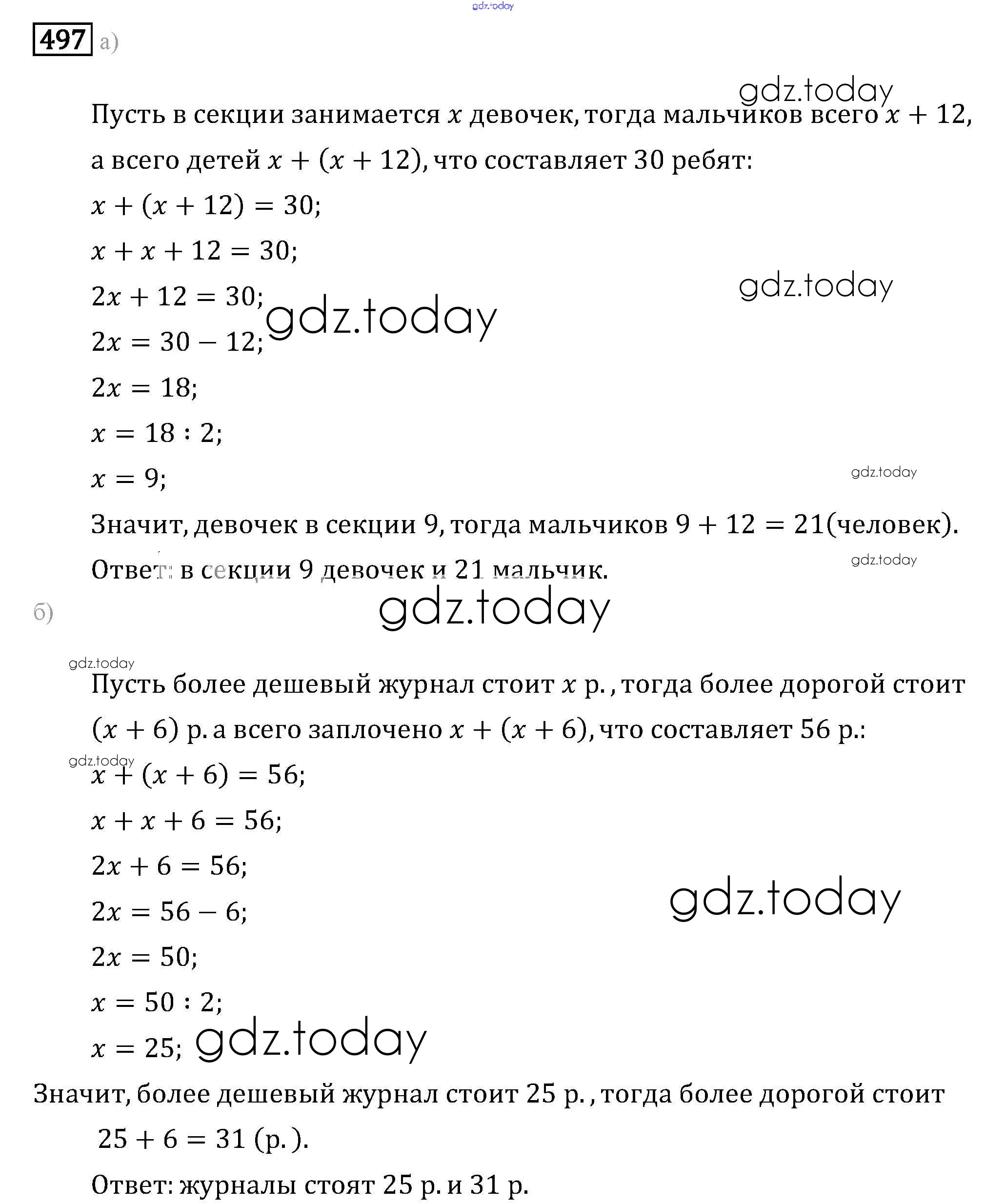 Ответы к Решение к упражнениям 497 Задачнику по Математике для 6 класса Бунимович, Кузнецова Просвещение Сферы 2014