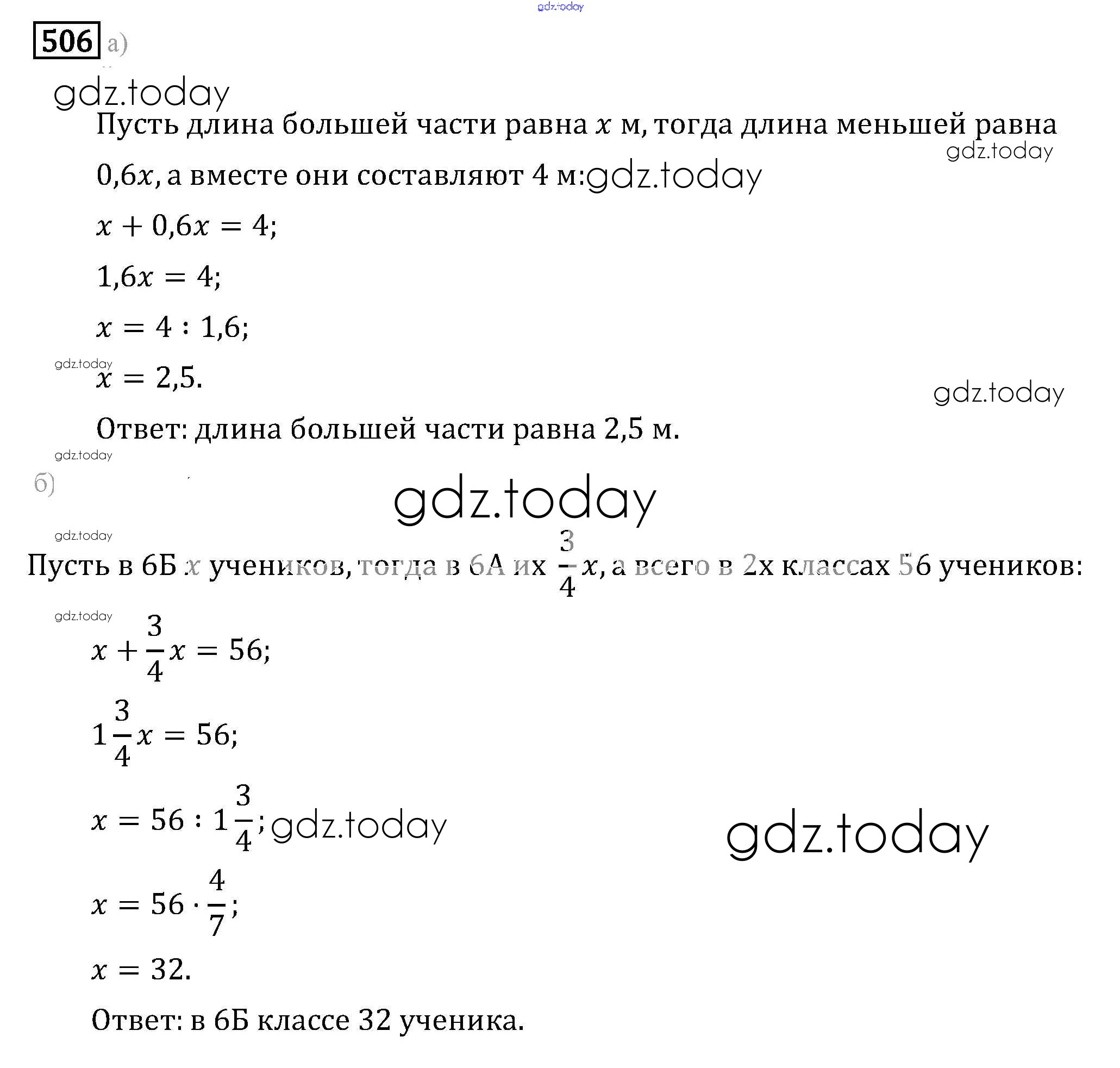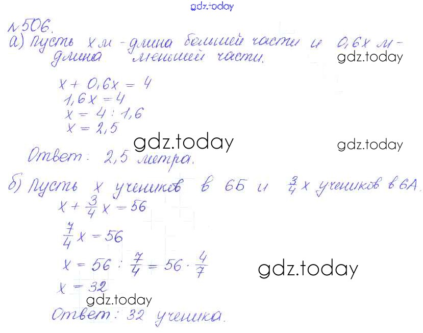 Ответы к Решение к упражнениям 506 Задачнику по Математике для 6 класса Бунимович, Кузнецова Просвещение Сферы 2014
