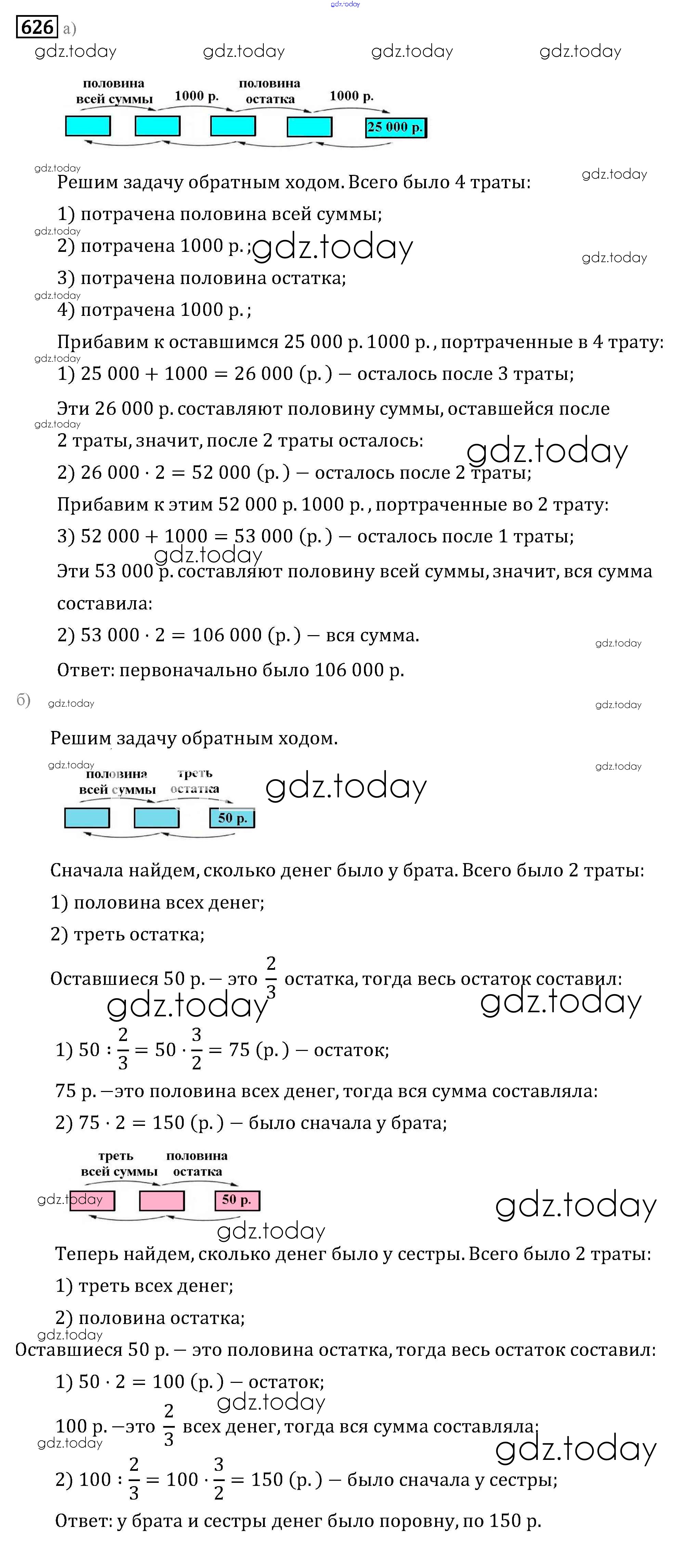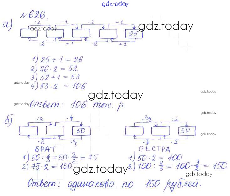 Ответы к Решение к упражнениям 626 Задачнику по Математике для 6 класса Бунимович, Кузнецова Просвещение Сферы 2014