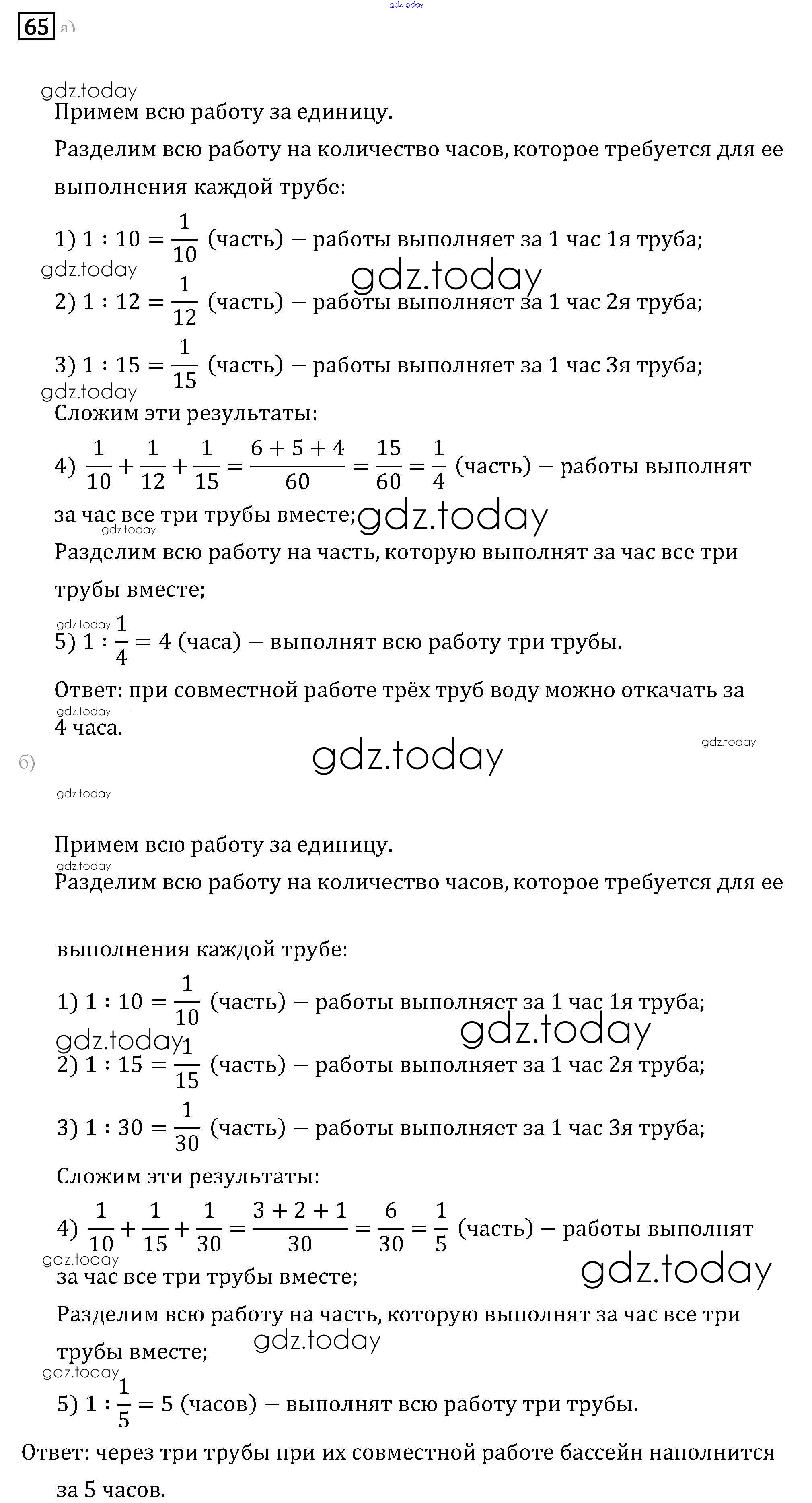 На страницах сайта gdz.today вы найдете учебный и вспомогательный материал, направленный на улучшения знаний школьной программы. ГДЗ - онлайн мир знаний Решение к упражнениям 65 Задачнику по Математике для 6 класса Бунимович, Кузнецова Просвещение Сферы 2014