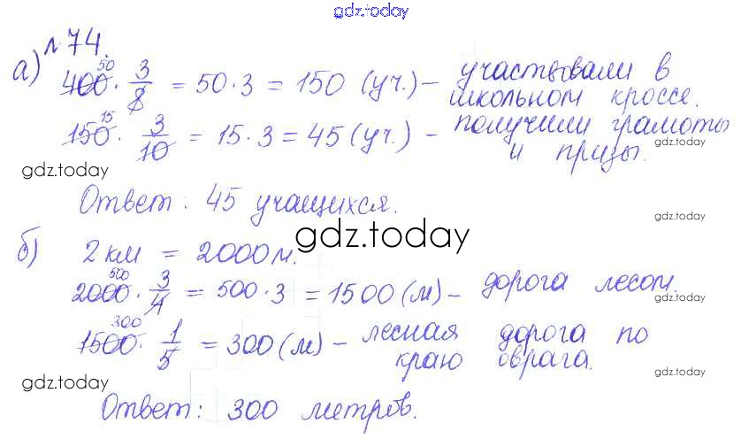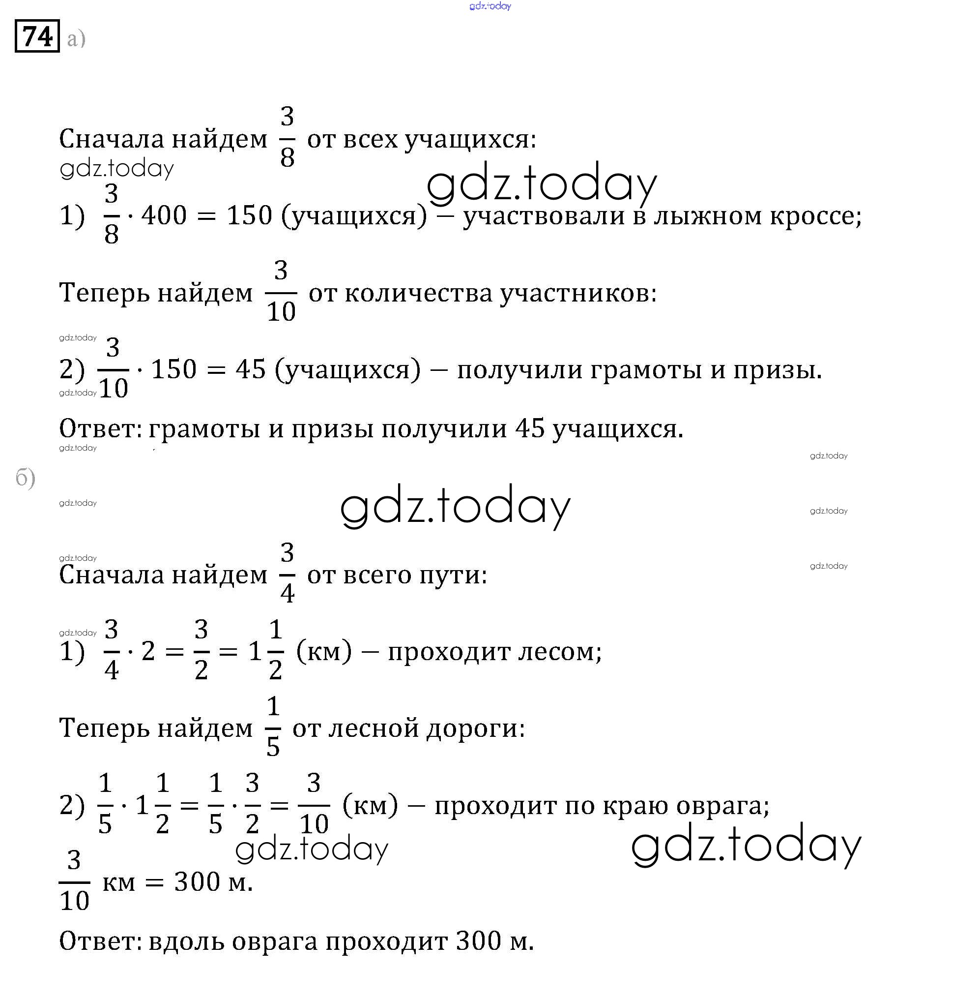 Ответы к Решение к упражнениям 74 Задачнику по Математике для 6 класса Бунимович, Кузнецова Просвещение Сферы 2014