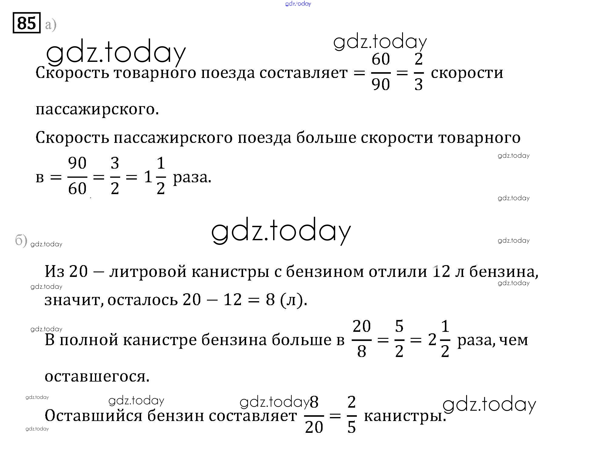 На страницах сайта gdz.today вы найдете учебный и вспомогательный материал, направленный на улучшения знаний школьной программы. ГДЗ - онлайн мир знаний Решение к упражнениям 85 Задачнику по Математике для 6 класса Бунимович, Кузнецова Просвещение Сферы 2014