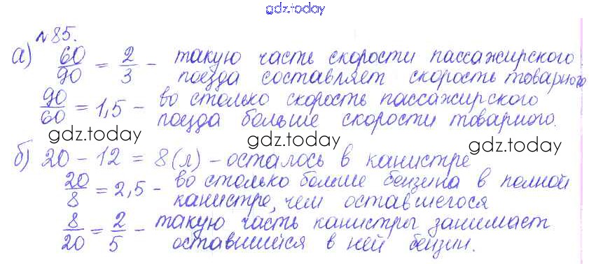 Ответы к Решение к упражнениям 85 Задачнику по Математике для 6 класса Бунимович, Кузнецова Просвещение Сферы 2014