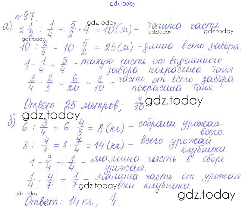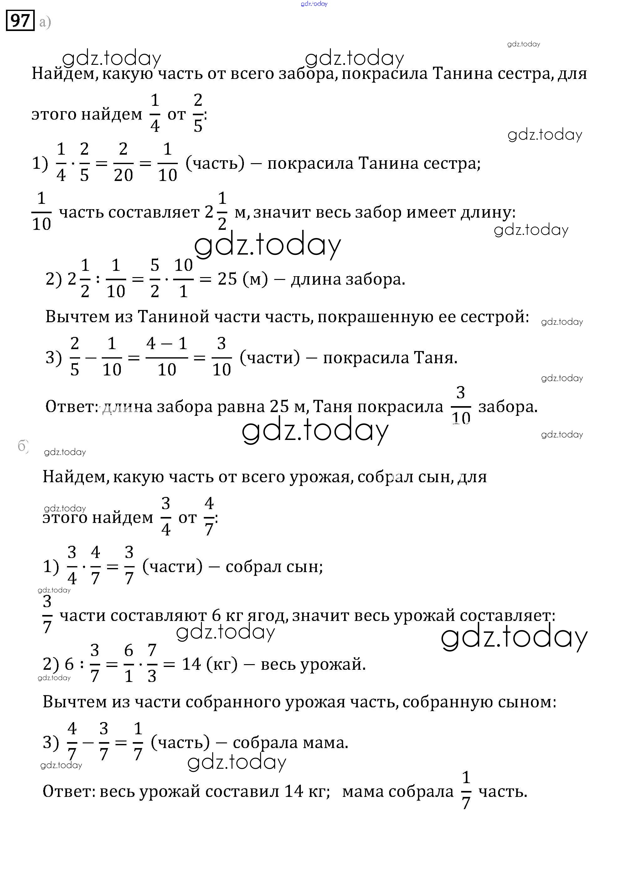 Ответы к Решение к упражнениям 97 Задачнику по Математике для 6 класса Бунимович, Кузнецова Просвещение Сферы 2014