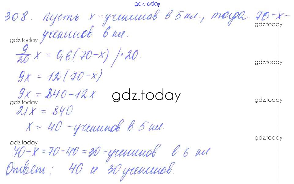 На страницах сайта gdz.today вы найдете учебный и вспомогательный материал, направленный на улучшения знаний школьной программы. ГДЗ - онлайн мир знаний Вариант 1 Решение к самостоятельным работам 308 Дидактическим материалам по Математике для 6 класса Чесноков, Нешков Академкнига 2014