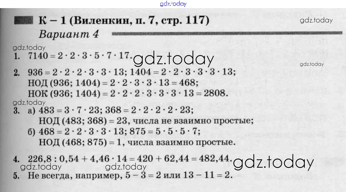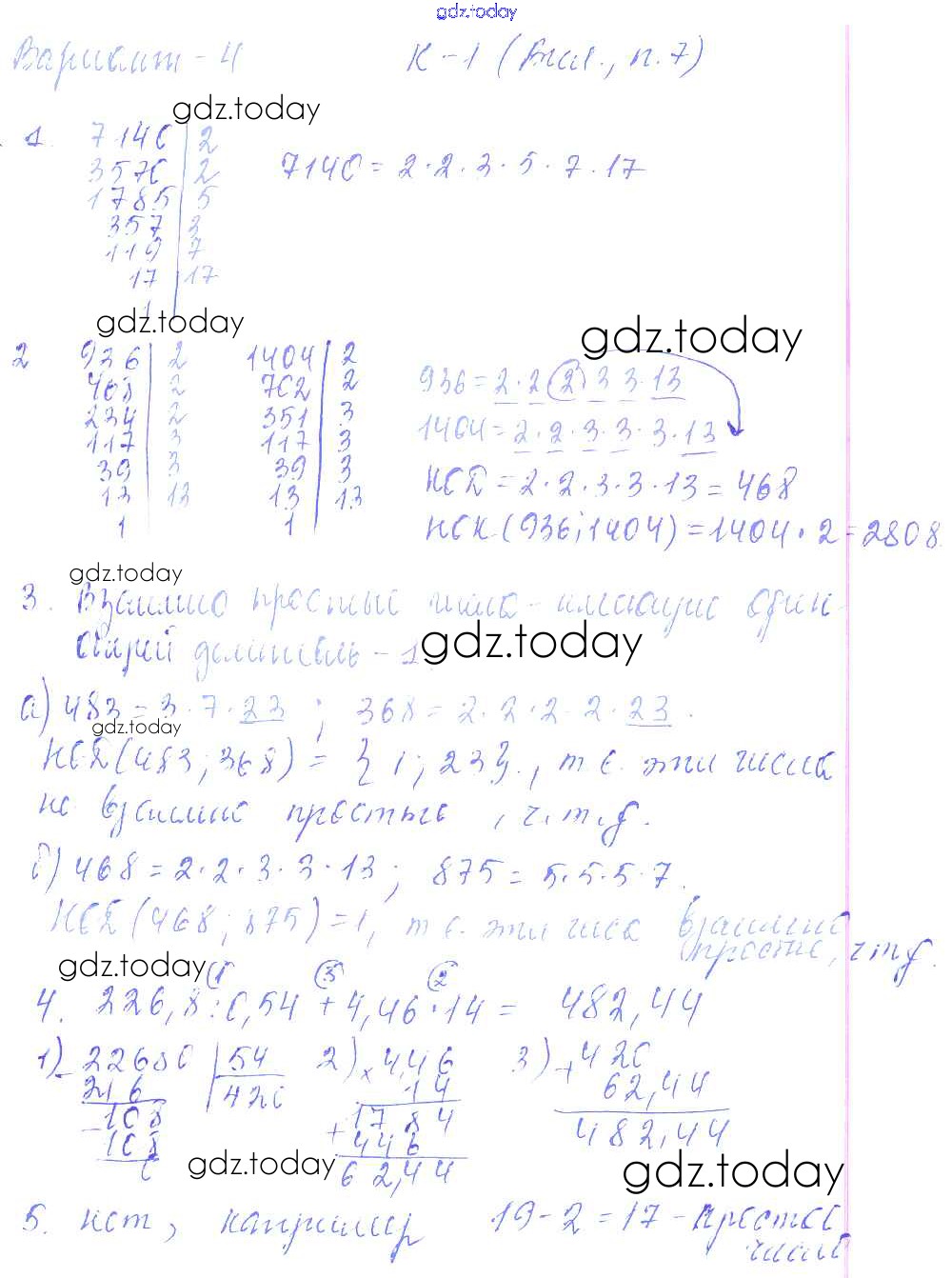 На страницах сайта gdz.today вы найдете учебный и вспомогательный материал, направленный на улучшения знаний школьной программы. ГДЗ - онлайн мир знаний КР-1 к учебнику Виленкина 4 Дидактическим материалам по Математике для 6 класса Чесноков, Нешков Академкнига 2014