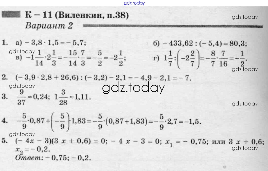 На страницах сайта gdz.today вы найдете учебный и вспомогательный материал, направленный на улучшения знаний школьной программы. ГДЗ - онлайн мир знаний КР-11 к учебнику Виленкина 2 Дидактическим материалам по Математике для 6 класса Чесноков, Нешков Академкнига 2014