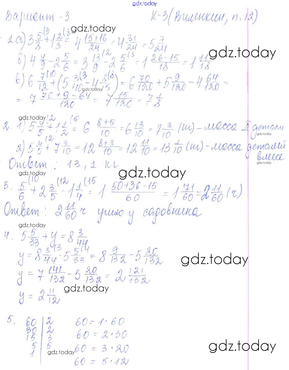 На страницах сайта gdz.today вы найдете учебный и вспомогательный материал, направленный на улучшения знаний школьной программы. ГДЗ - онлайн мир знаний КР-3 к учебнику Виленкина 3 Дидактическим материалам по Математике для 6 класса Чесноков, Нешков Академкнига 2014