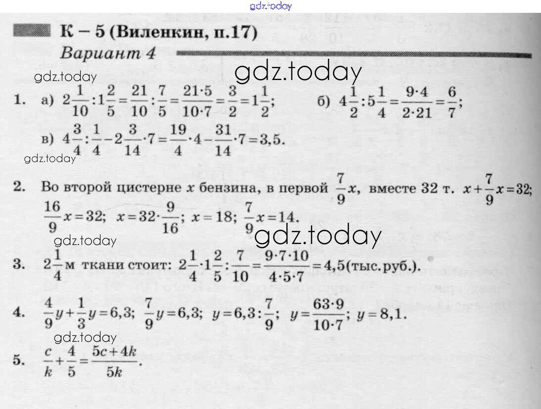 На страницах сайта gdz.today вы найдете учебный и вспомогательный материал, направленный на улучшения знаний школьной программы. ГДЗ - онлайн мир знаний КР-5 к учебнику Виленкина 4 Дидактическим материалам по Математике для 6 класса Чесноков, Нешков Академкнига 2014