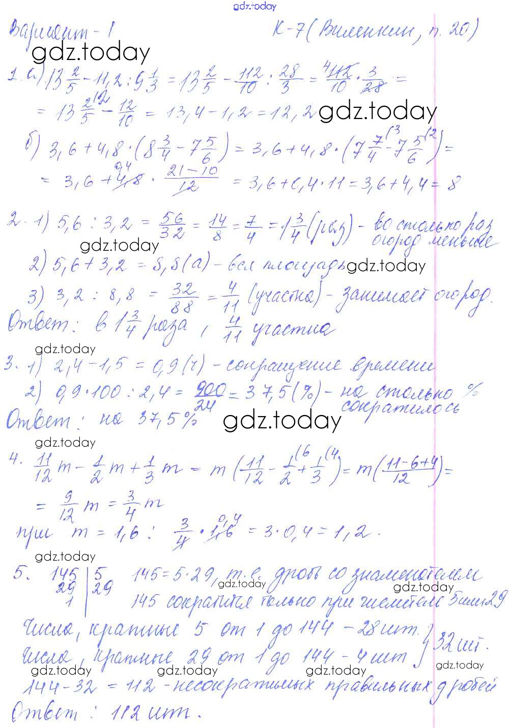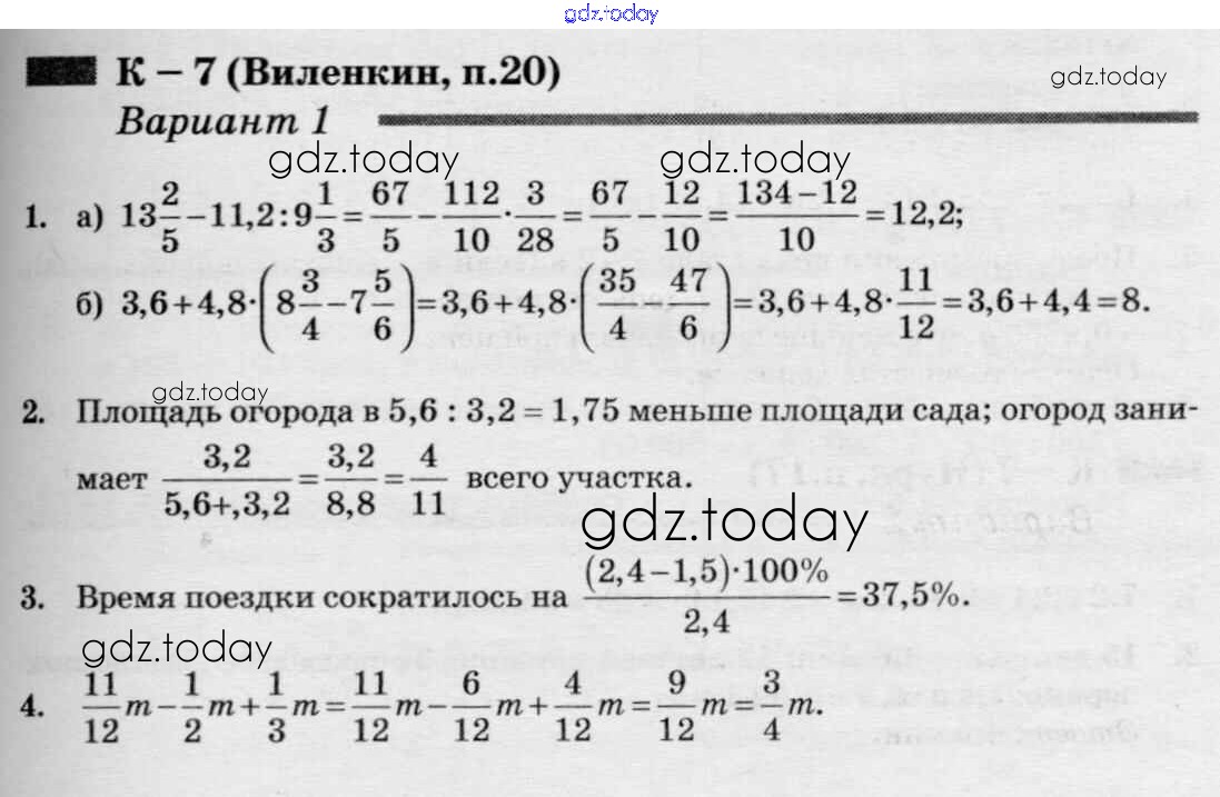 На страницах сайта gdz.today вы найдете учебный и вспомогательный материал, направленный на улучшения знаний школьной программы. ГДЗ - онлайн мир знаний КР-7 к учебнику Виленкина 1 Дидактическим материалам по Математике для 6 класса Чесноков, Нешков Академкнига 2014