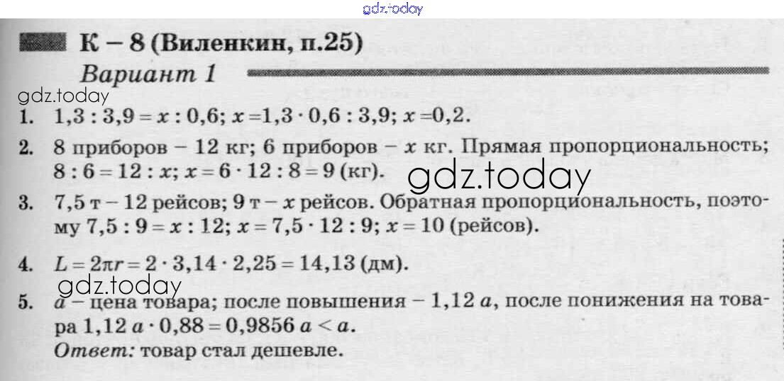 На страницах сайта gdz.today вы найдете учебный и вспомогательный материал, направленный на улучшения знаний школьной программы. ГДЗ - онлайн мир знаний КР-8 к учебнику Виленкина 1 Дидактическим материалам по Математике для 6 класса Чесноков, Нешков Академкнига 2014