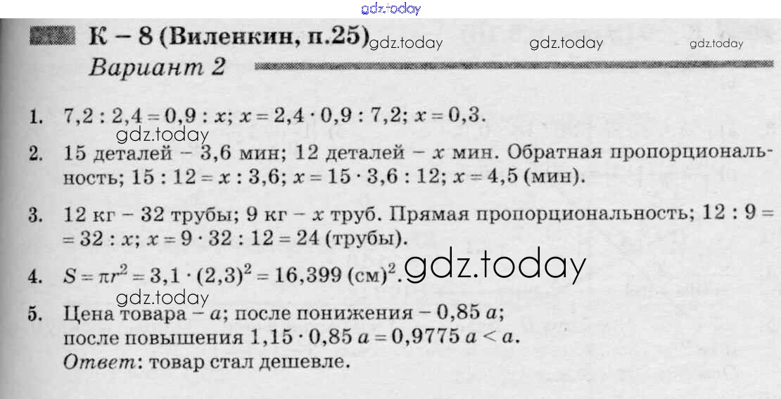 На страницах сайта gdz.today вы найдете учебный и вспомогательный материал, направленный на улучшения знаний школьной программы. ГДЗ - онлайн мир знаний КР-8 к учебнику Виленкина 2 Дидактическим материалам по Математике для 6 класса Чесноков, Нешков Академкнига 2014
