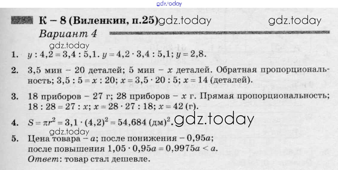 На страницах сайта gdz.today вы найдете учебный и вспомогательный материал, направленный на улучшения знаний школьной программы. ГДЗ - онлайн мир знаний КР-8 к учебнику Виленкина 4 Дидактическим материалам по Математике для 6 класса Чесноков, Нешков Академкнига 2014
