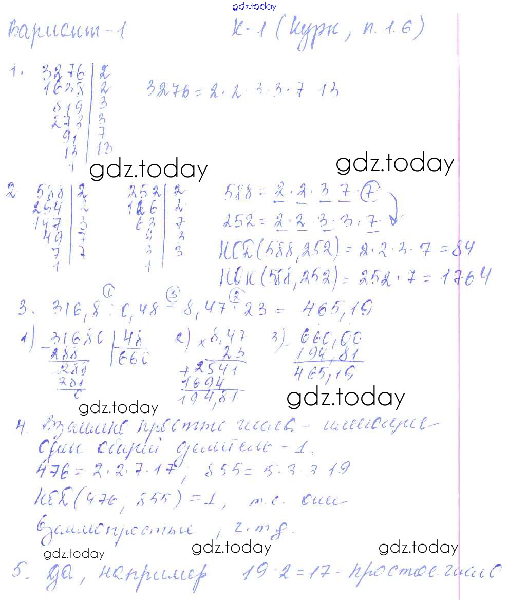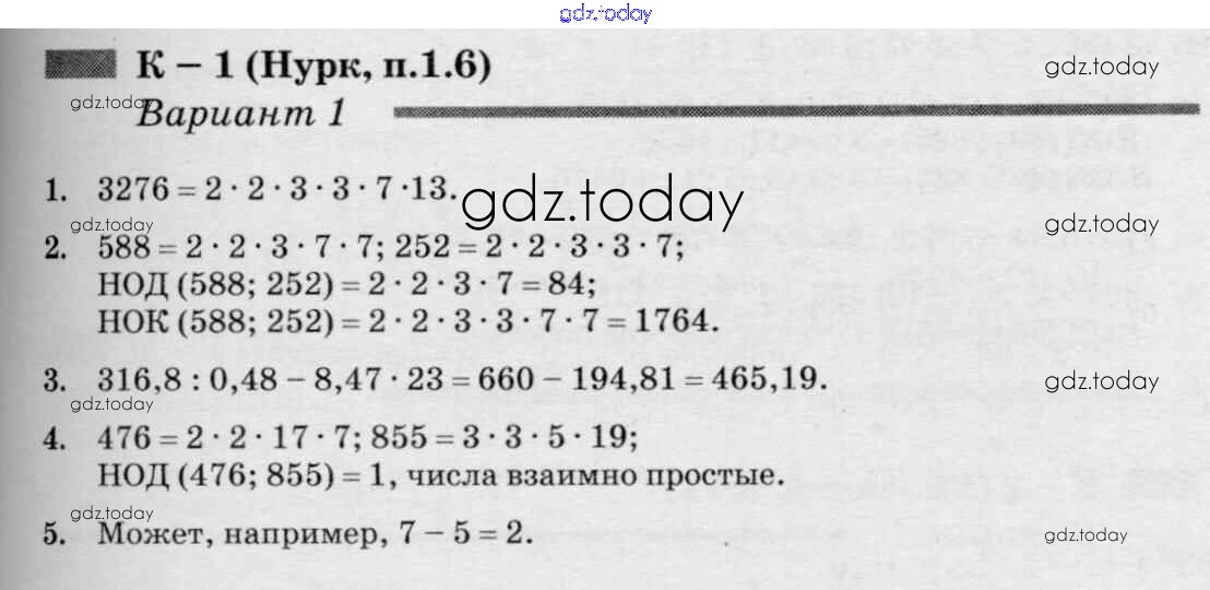 На страницах сайта gdz.today вы найдете учебный и вспомогательный материал, направленный на улучшения знаний школьной программы. ГДЗ - онлайн мир знаний КР-1 к учебнику Нурка 1 Дидактическим материалам по Математике для 6 класса Чесноков, Нешков Академкнига 2014