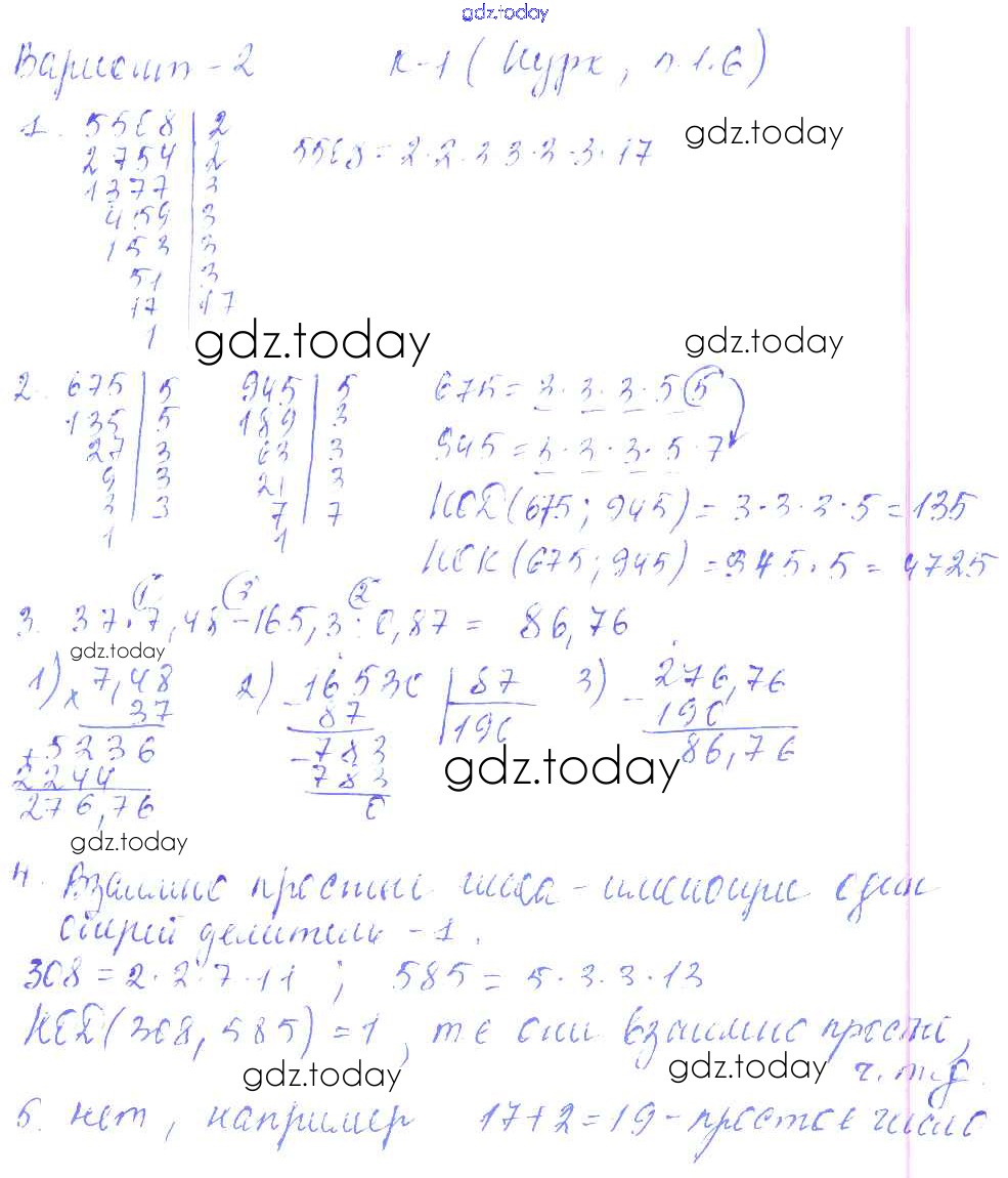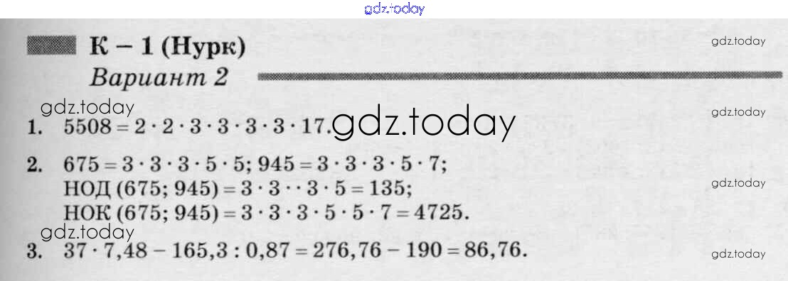 На страницах сайта gdz.today вы найдете учебный и вспомогательный материал, направленный на улучшения знаний школьной программы. ГДЗ - онлайн мир знаний КР-1 к учебнику Нурка 2 Дидактическим материалам по Математике для 6 класса Чесноков, Нешков Академкнига 2014