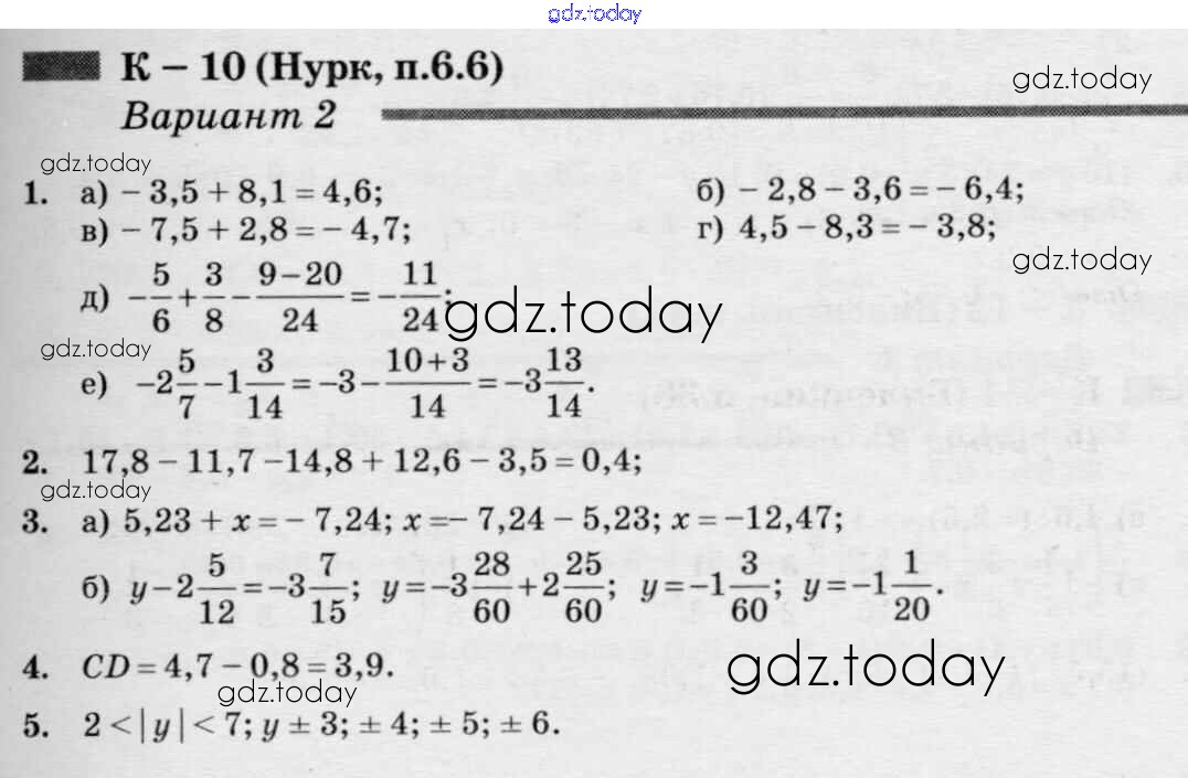 На страницах сайта gdz.today вы найдете учебный и вспомогательный материал, направленный на улучшения знаний школьной программы. ГДЗ - онлайн мир знаний КР-10 к учебнику Нурка 2 Дидактическим материалам по Математике для 6 класса Чесноков, Нешков Академкнига 2014
