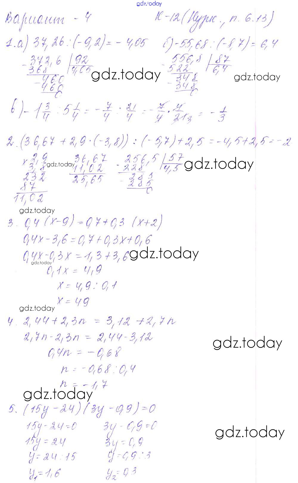 Ответы к КР-12 к учебнику Нурка 4 Дидактическим материалам по Математике для 6 класса Чесноков, Нешков Академкнига 2014