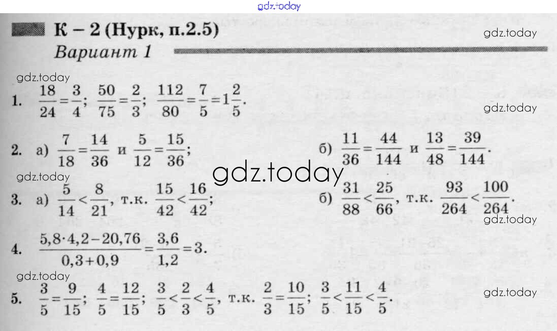 Ответы к КР-2 к учебнику Нурка 1 Дидактическим материалам по Математике для 6 класса Чесноков, Нешков Академкнига 2014