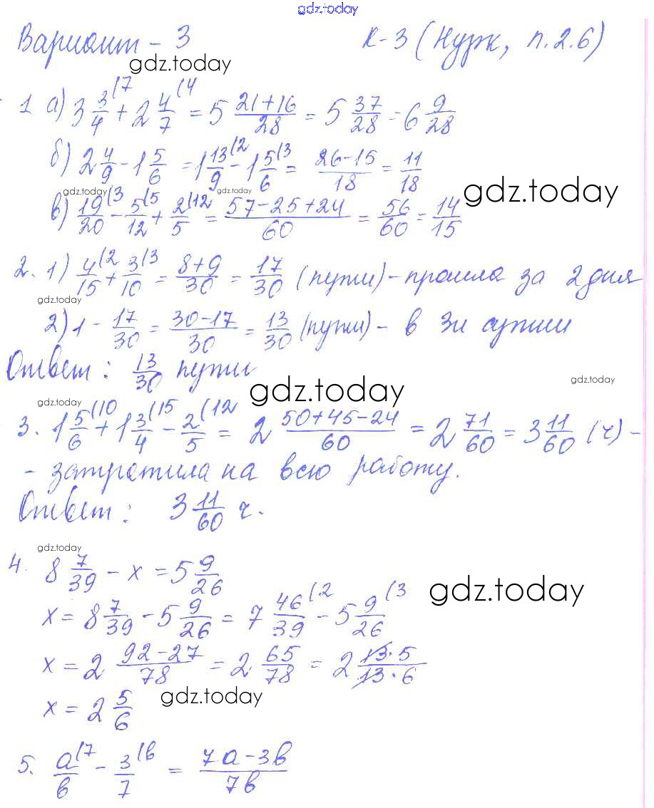 Ответы к КР-3 к учебнику Нурка 3 Дидактическим материалам по Математике для 6 класса Чесноков, Нешков Академкнига 2014