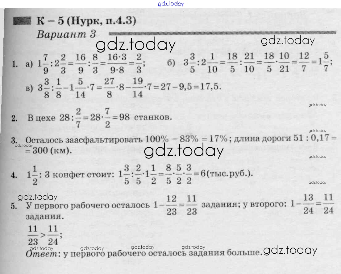 На страницах сайта gdz.today вы найдете учебный и вспомогательный материал, направленный на улучшения знаний школьной программы. ГДЗ - онлайн мир знаний КР-5 к учебнику Нурка 3 Дидактическим материалам по Математике для 6 класса Чесноков, Нешков Академкнига 2014
