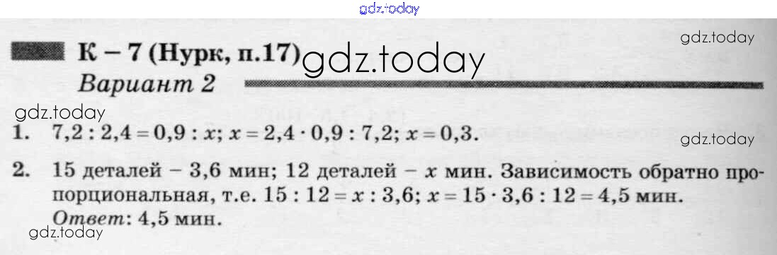 На страницах сайта gdz.today вы найдете учебный и вспомогательный материал, направленный на улучшения знаний школьной программы. ГДЗ - онлайн мир знаний КР-7 к учебнику Нурка 2 Дидактическим материалам по Математике для 6 класса Чесноков, Нешков Академкнига 2014