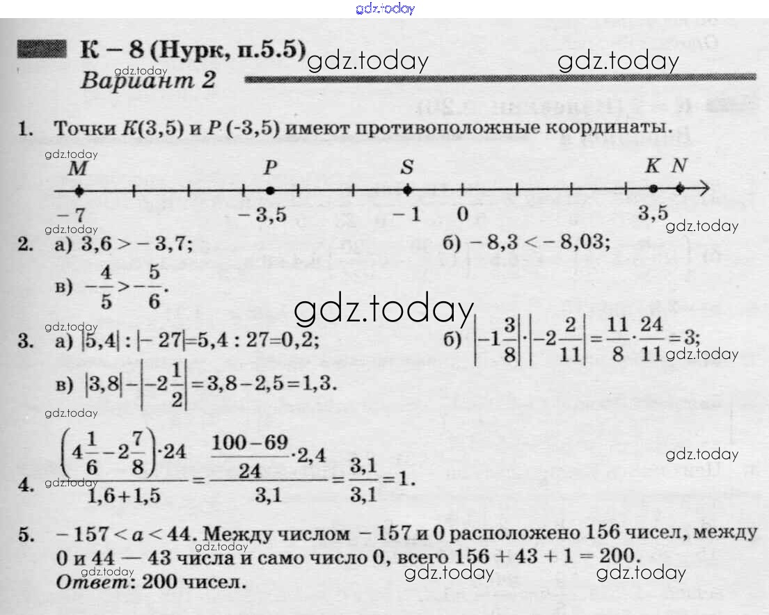 На страницах сайта gdz.today вы найдете учебный и вспомогательный материал, направленный на улучшения знаний школьной программы. ГДЗ - онлайн мир знаний КР-8 к учебнику Нурка 2 Дидактическим материалам по Математике для 6 класса Чесноков, Нешков Академкнига 2014