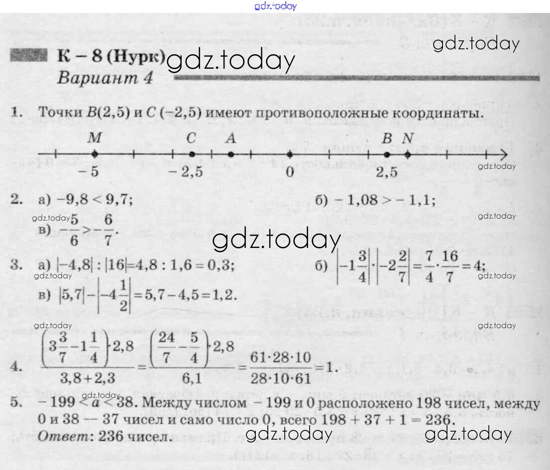 На страницах сайта gdz.today вы найдете учебный и вспомогательный материал, направленный на улучшения знаний школьной программы. ГДЗ - онлайн мир знаний КР-8 к учебнику Нурка 4 Дидактическим материалам по Математике для 6 класса Чесноков, Нешков Академкнига 2014