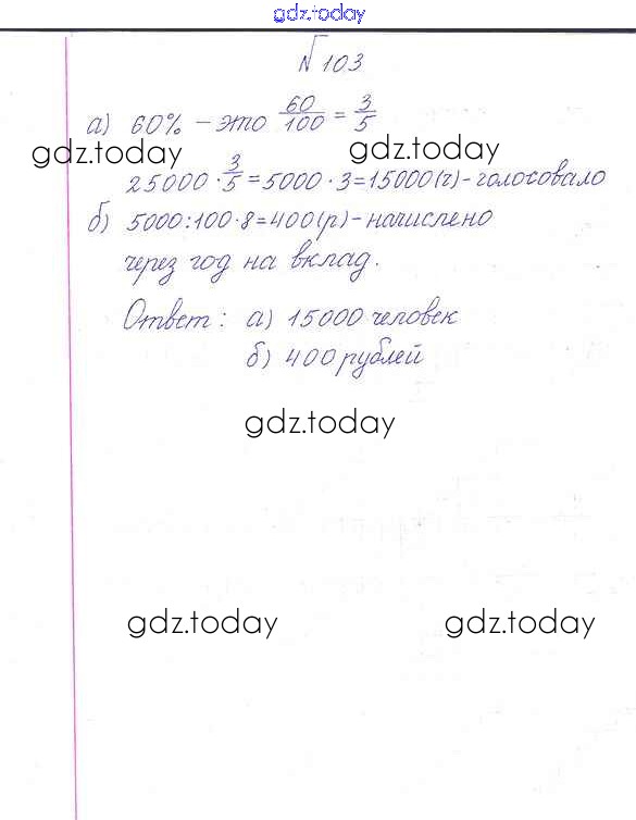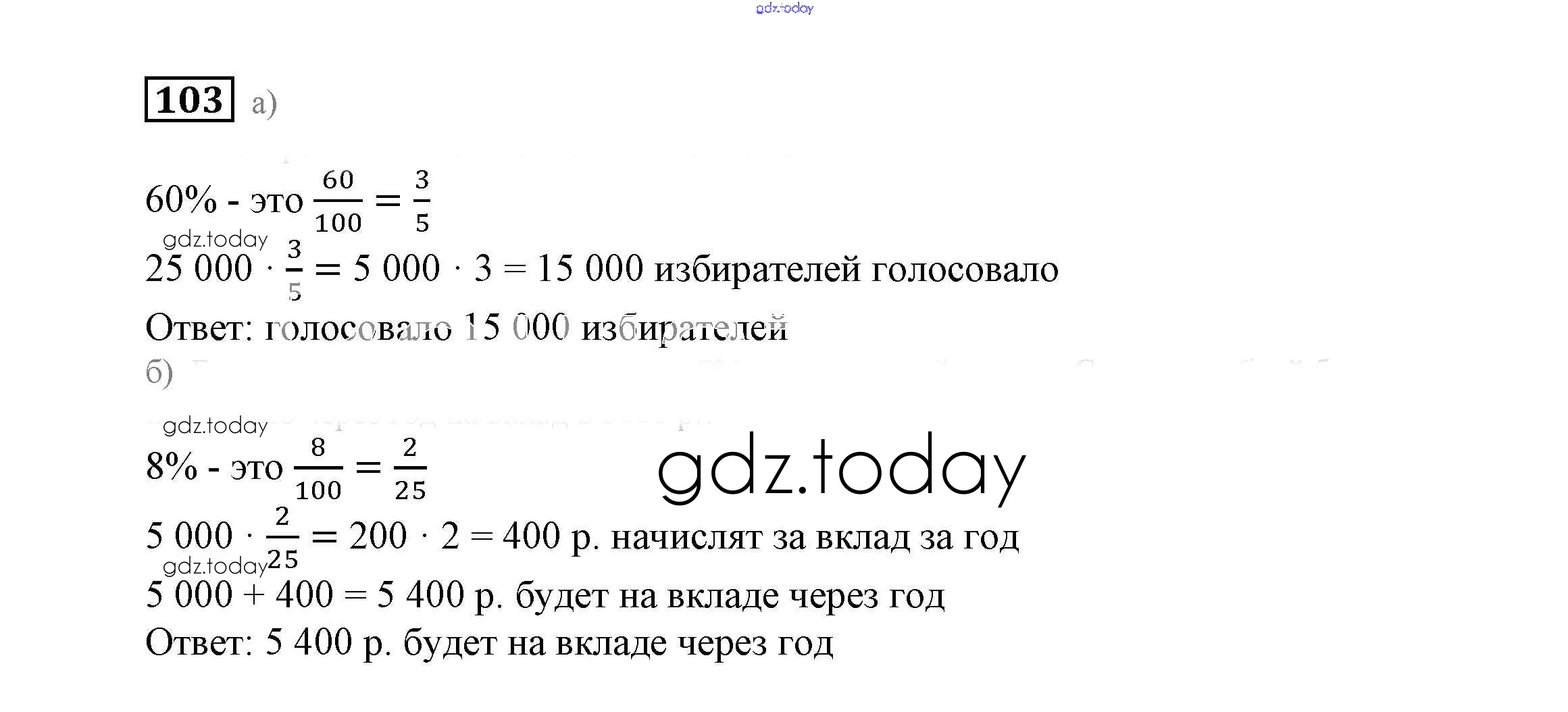 На страницах сайта gdz.today вы найдете учебный и вспомогательный материал, направленный на улучшения знаний школьной программы. ГДЗ - онлайн мир знаний Решение к упражнениям 103 Учебнику по Математике для 6 класса Дорофеев, Шарыгин Просвещение Академический школьный учебник 2014