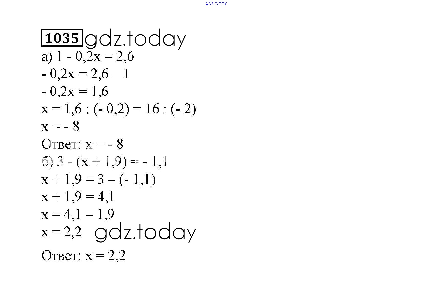 Ответы к Решение к упражнениям 1035 Учебнику по Математике для 6 класса Дорофеев, Шарыгин Просвещение Академический школьный учебник 2014