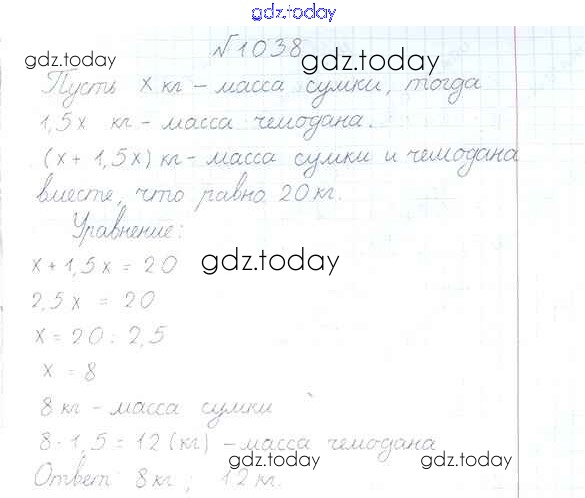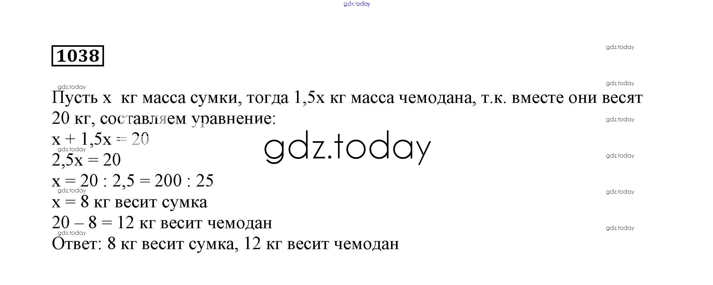 Ответы к Решение к упражнениям 1038 Учебнику по Математике для 6 класса Дорофеев, Шарыгин Просвещение Академический школьный учебник 2014