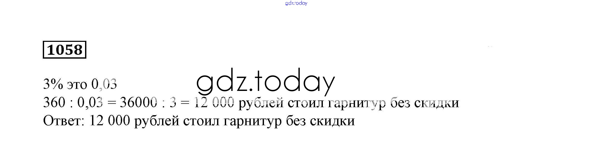 Ответы к Решение к упражнениям 1058 Учебнику по Математике для 6 класса Дорофеев, Шарыгин Просвещение Академический школьный учебник 2014