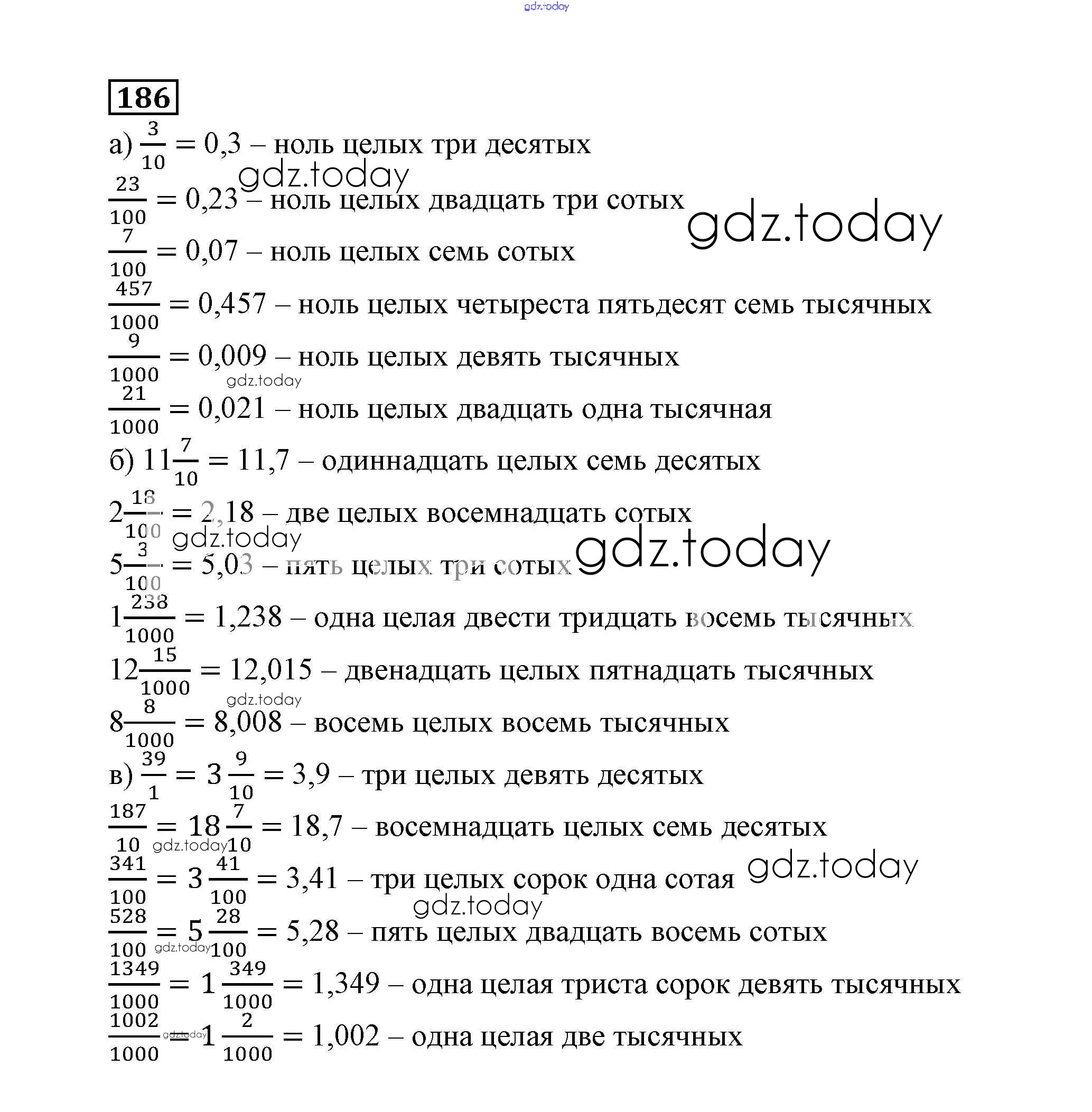 На страницах сайта gdz.today вы найдете учебный и вспомогательный материал, направленный на улучшения знаний школьной программы. ГДЗ - онлайн мир знаний Решение к упражнениям 186 Учебнику по Математике для 6 класса Дорофеев, Шарыгин Просвещение Академический школьный учебник 2014