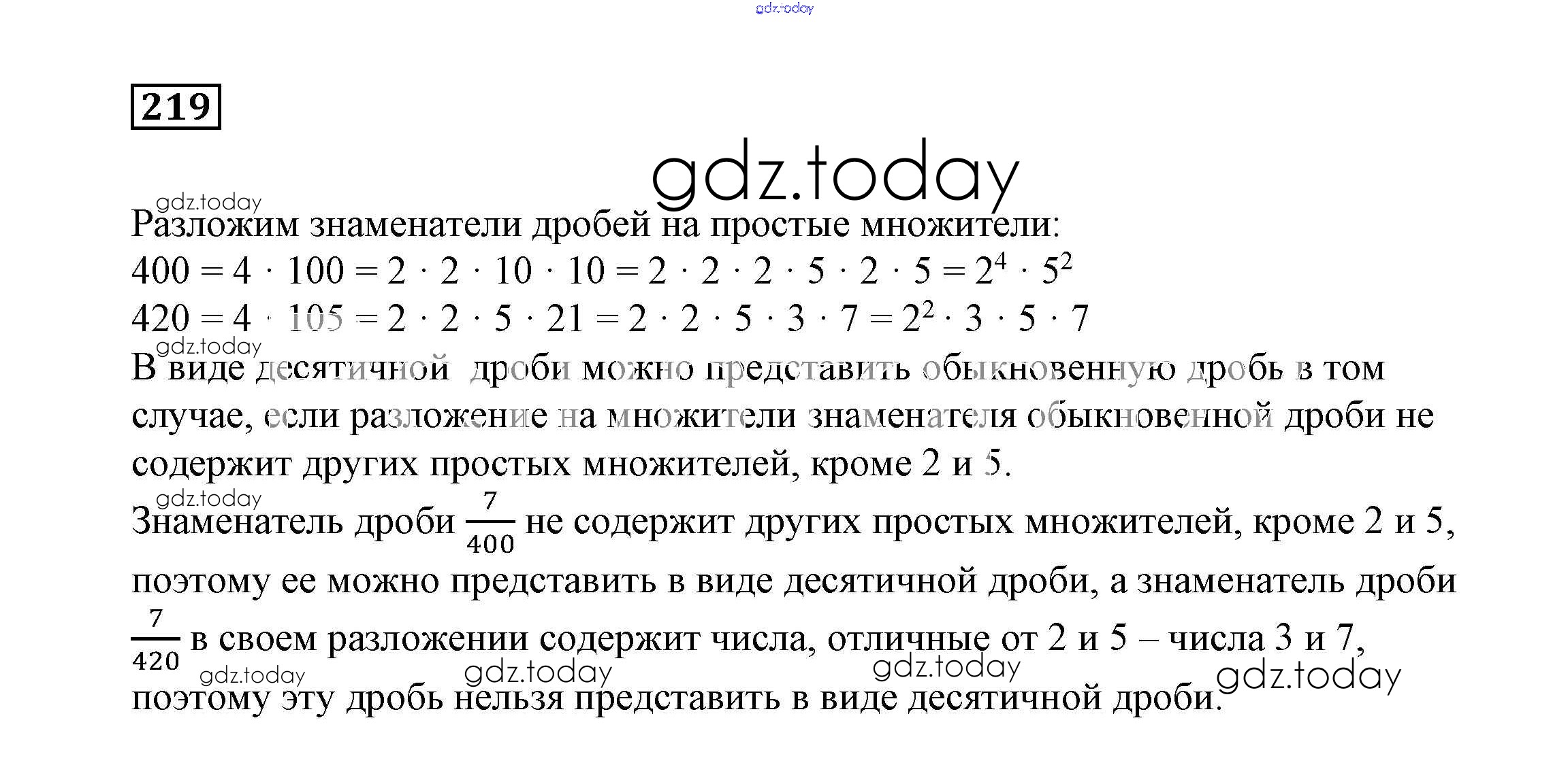 На страницах сайта gdz.today вы найдете учебный и вспомогательный материал, направленный на улучшения знаний школьной программы. ГДЗ - онлайн мир знаний Решение к упражнениям 219 Учебнику по Математике для 6 класса Дорофеев, Шарыгин Просвещение Академический школьный учебник 2014
